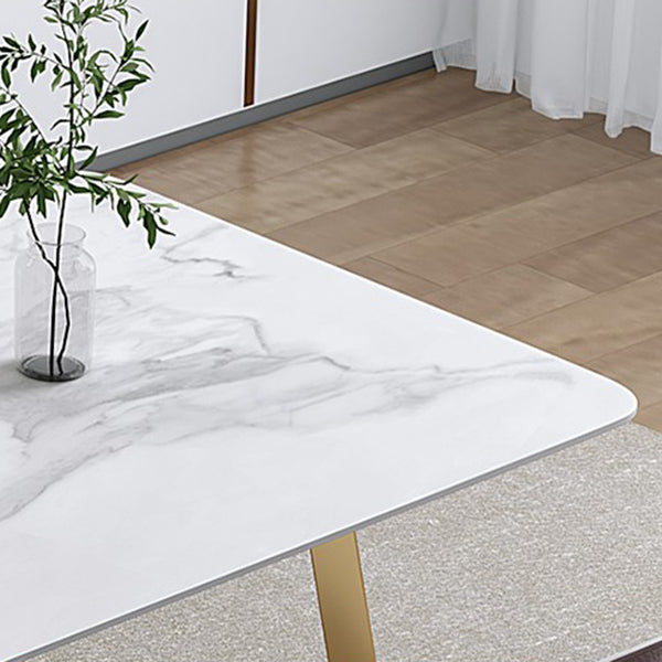 Glam Iron Dinette Set 1/2/4/5/7 Pieces Rectangle Sintered Stone Top Dining Table Set