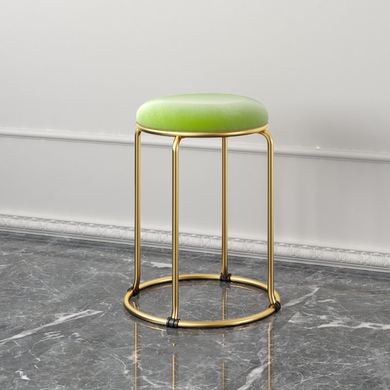 Glam Standard Ottoman Fade Resistant Velvet Mental Leg Solid Color Round Ottoman
