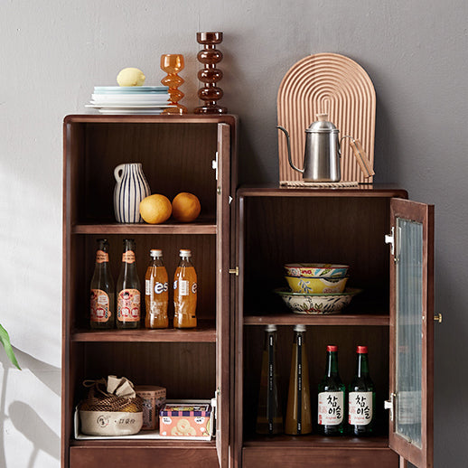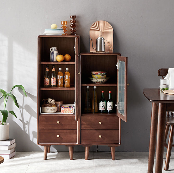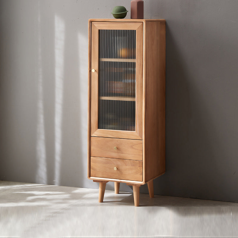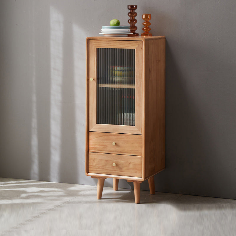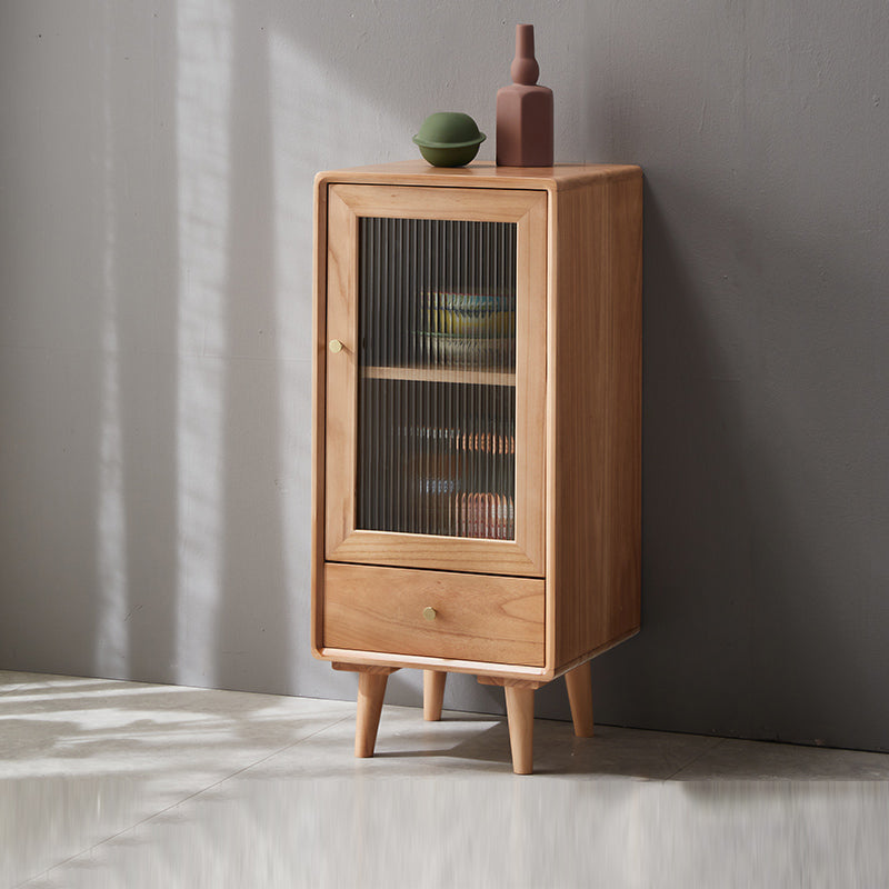 Glass Paned Accent Cabinet Modern Style 1-Door Chest with Drawers