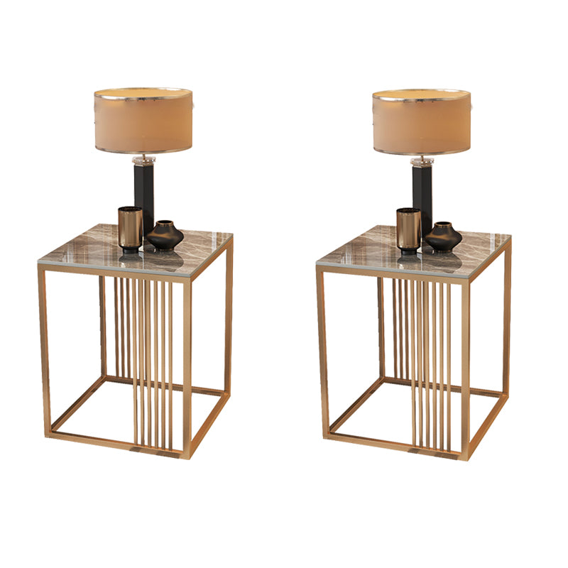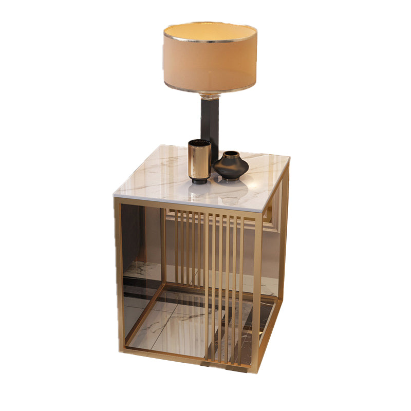 Golden Frame End Table 19.69" Tall Square Stone Sofa Side Accent Table