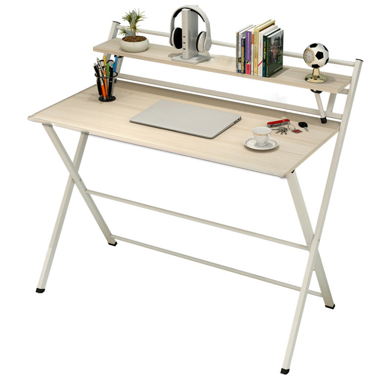 Light Wood Drawing Desk Solid Wood Writing Desk with Bookshelf