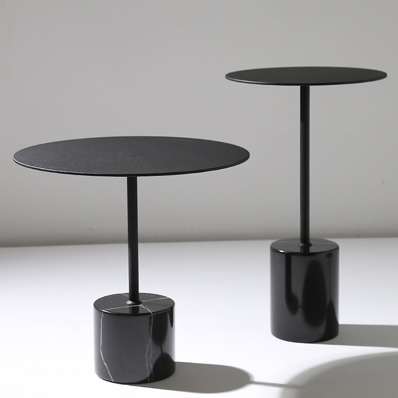 Marble Pedestal End Table Metal Black/ Gold Round Side End Table