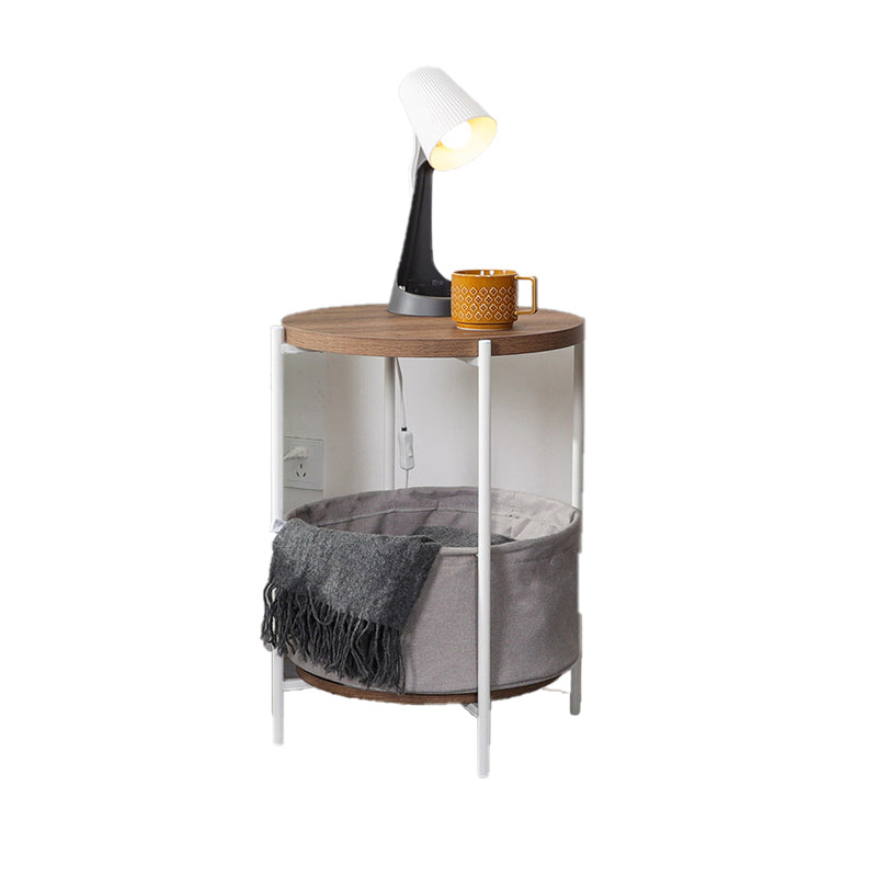 Mid-Century 4 Legs End Table Round Side End Table with Storage