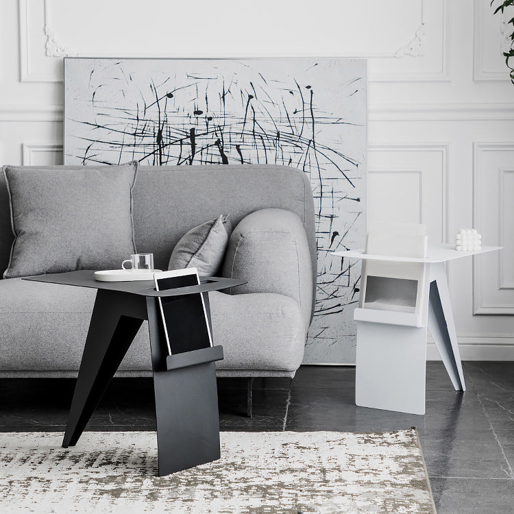 Mid-Century Sled End Table Geometric Metal Side Table, 19" Tall