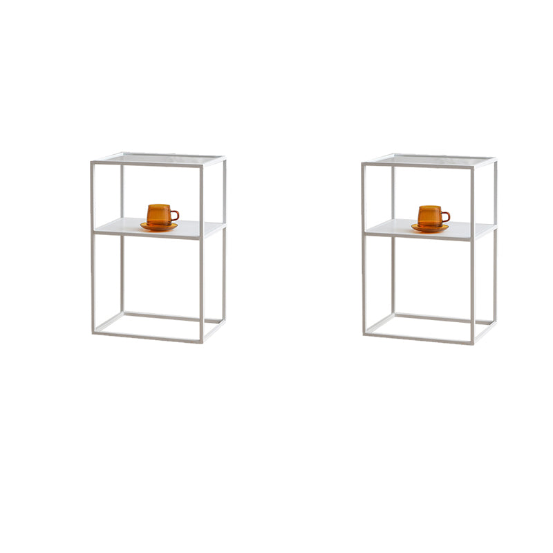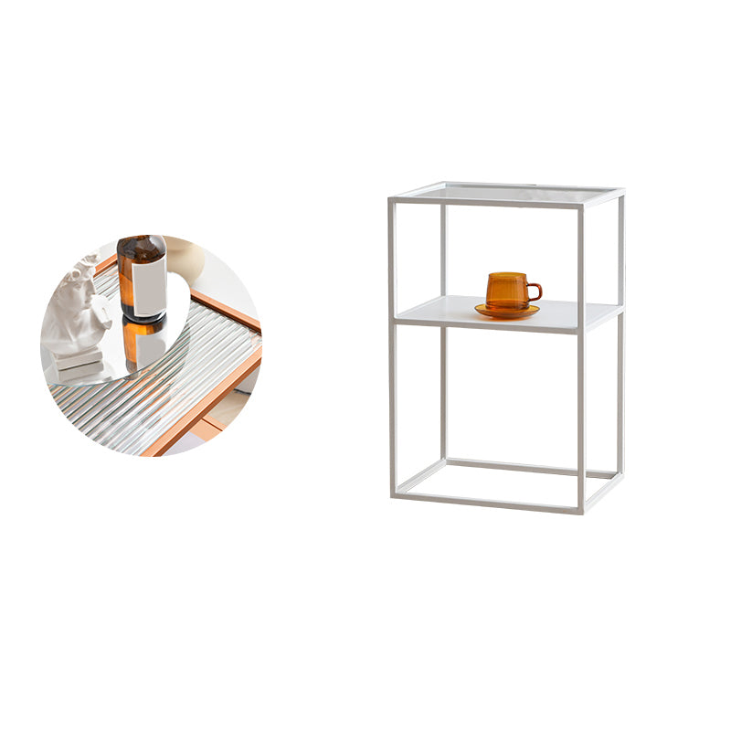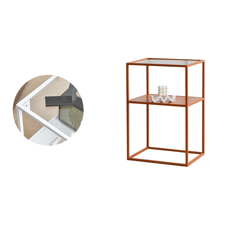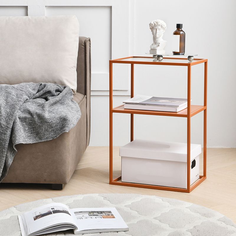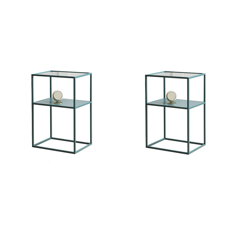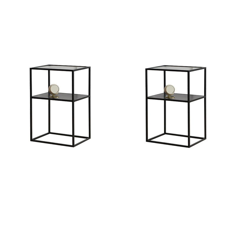 Modern 15.7-inch Rectangular Glass Top Side Table Iron Frame End Table with Shelf