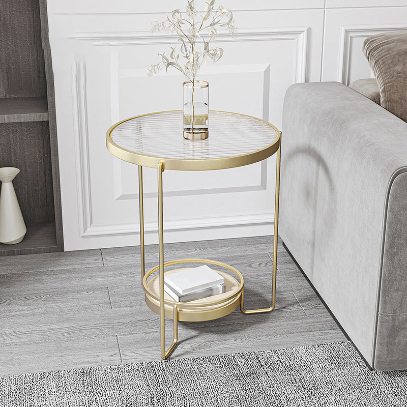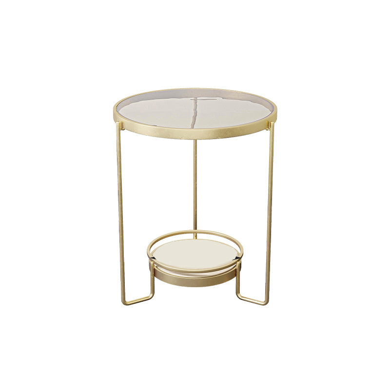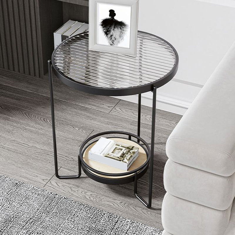 Modern 23.62" Tall Iron Frame End Table Round Glass Top Side Table with Shelf
