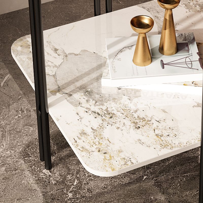 Modern Gray Glass Side End Table 4 Legs Double Tier Corner Table