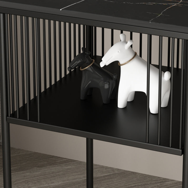 Modernistic Metal 4 Legs End Table Square Slate Top End Table