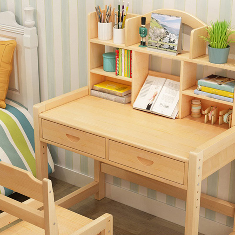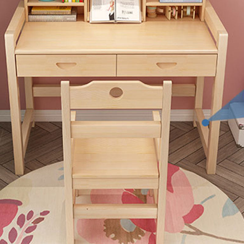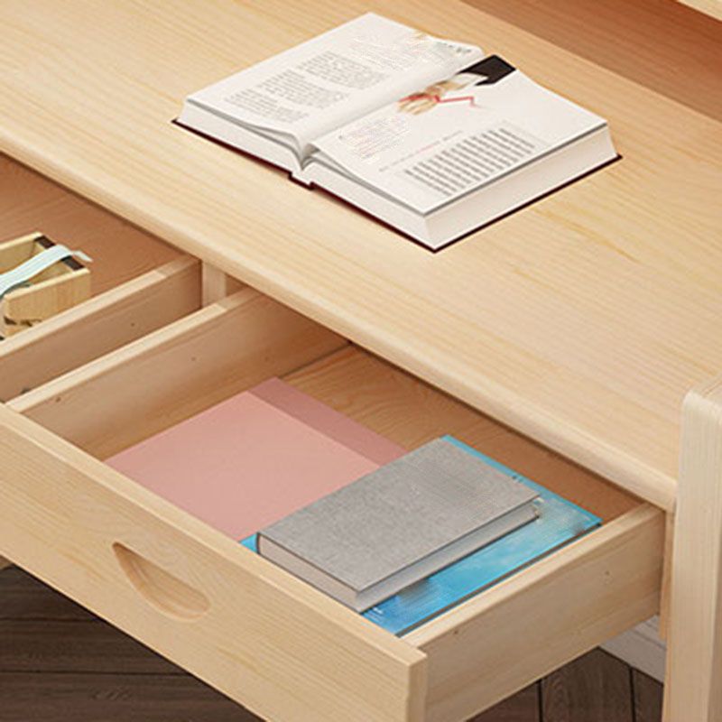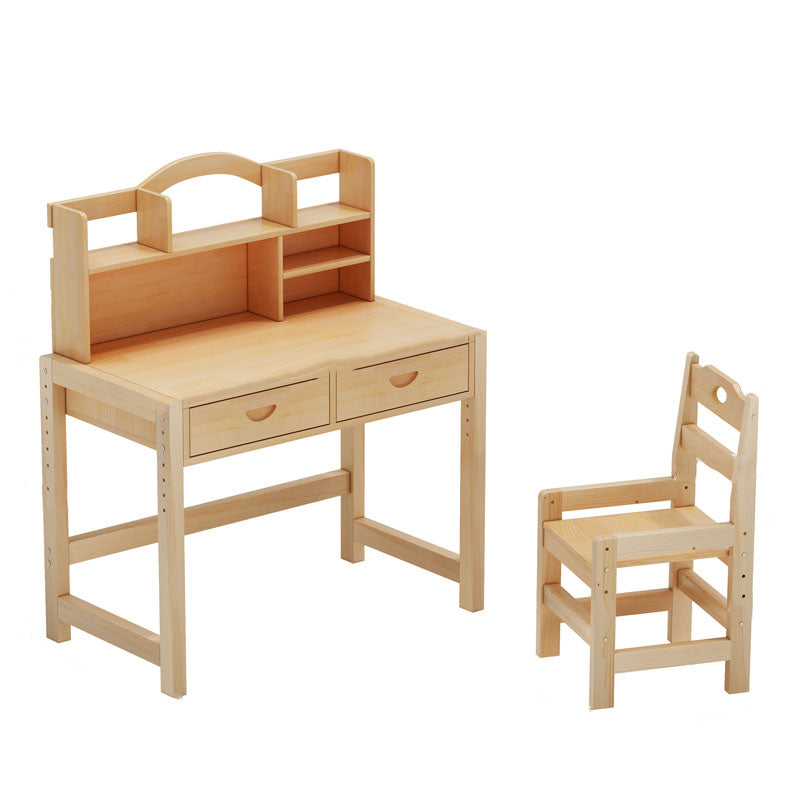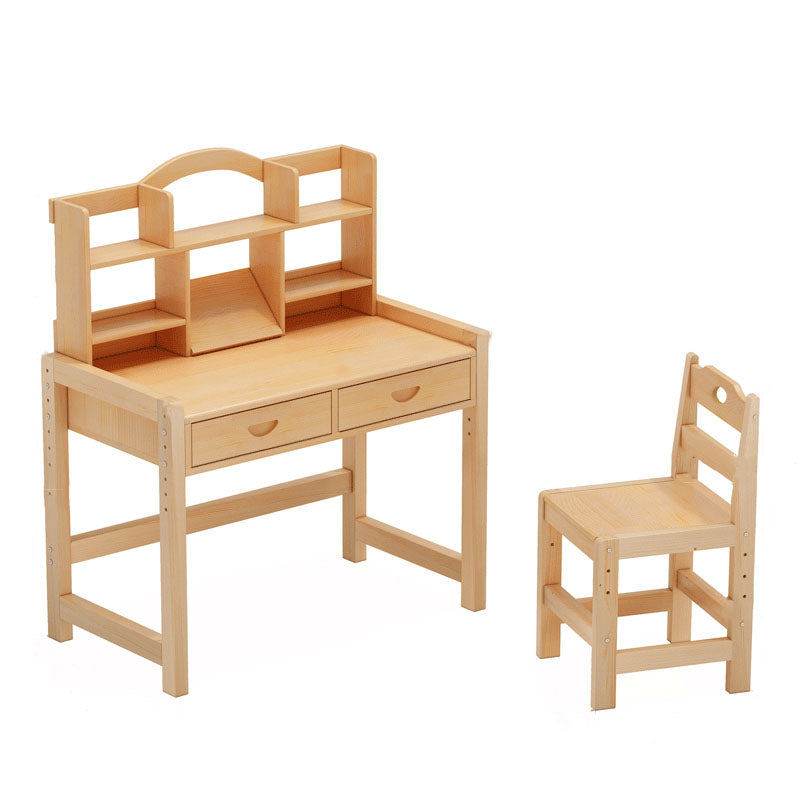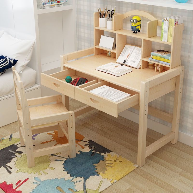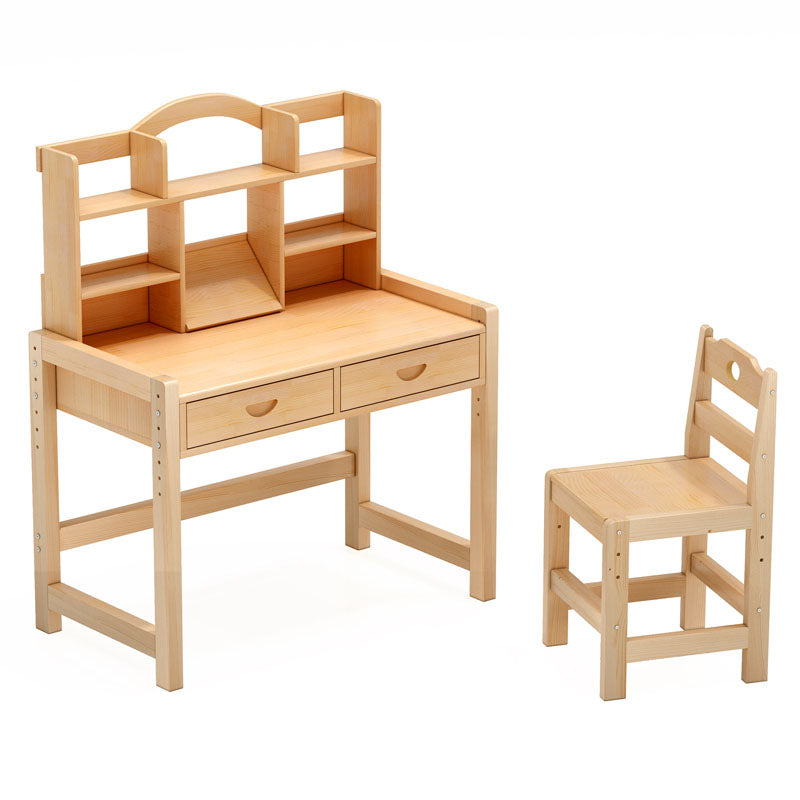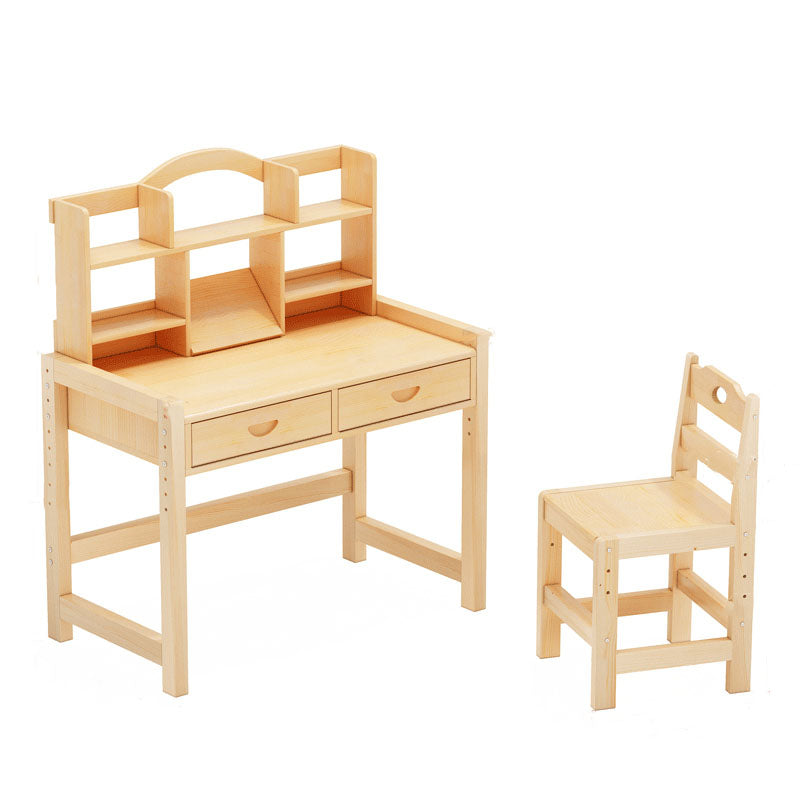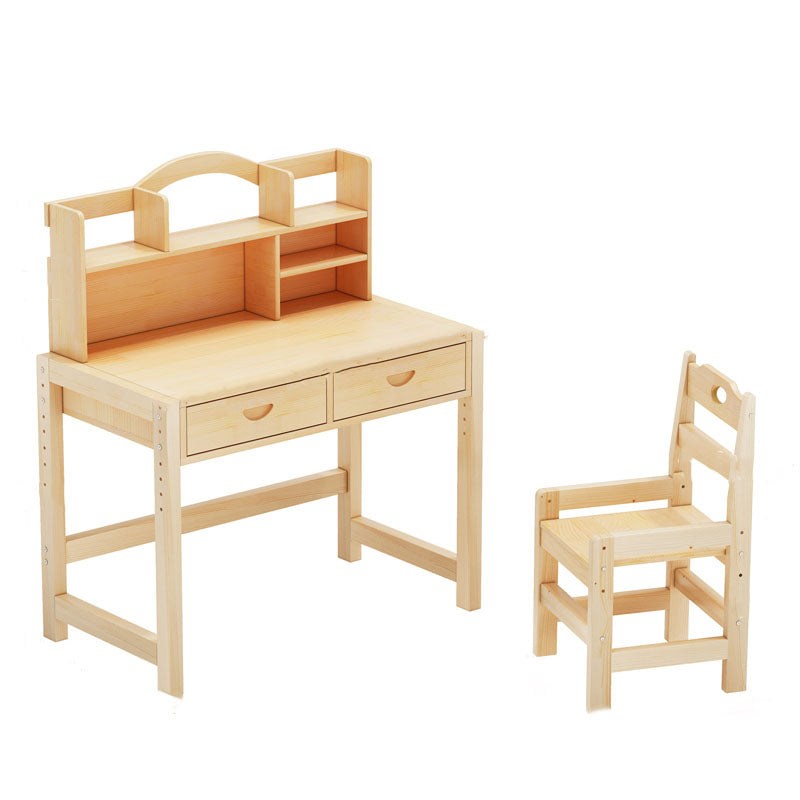 Pine Solid Wood Study Desk Table and Chair Set with Storage Shelves