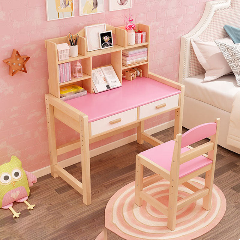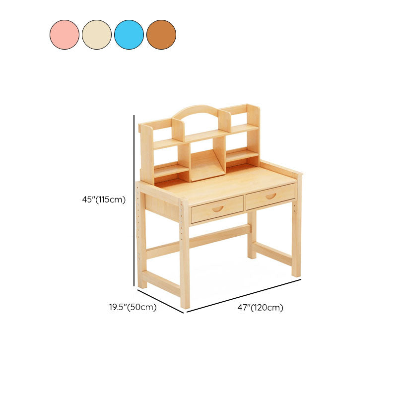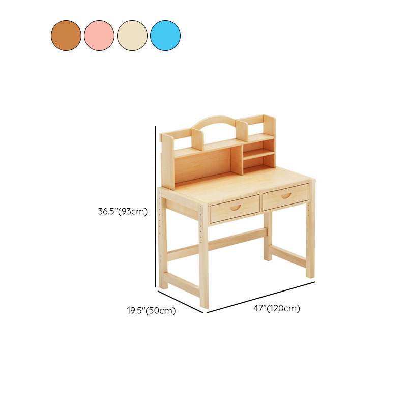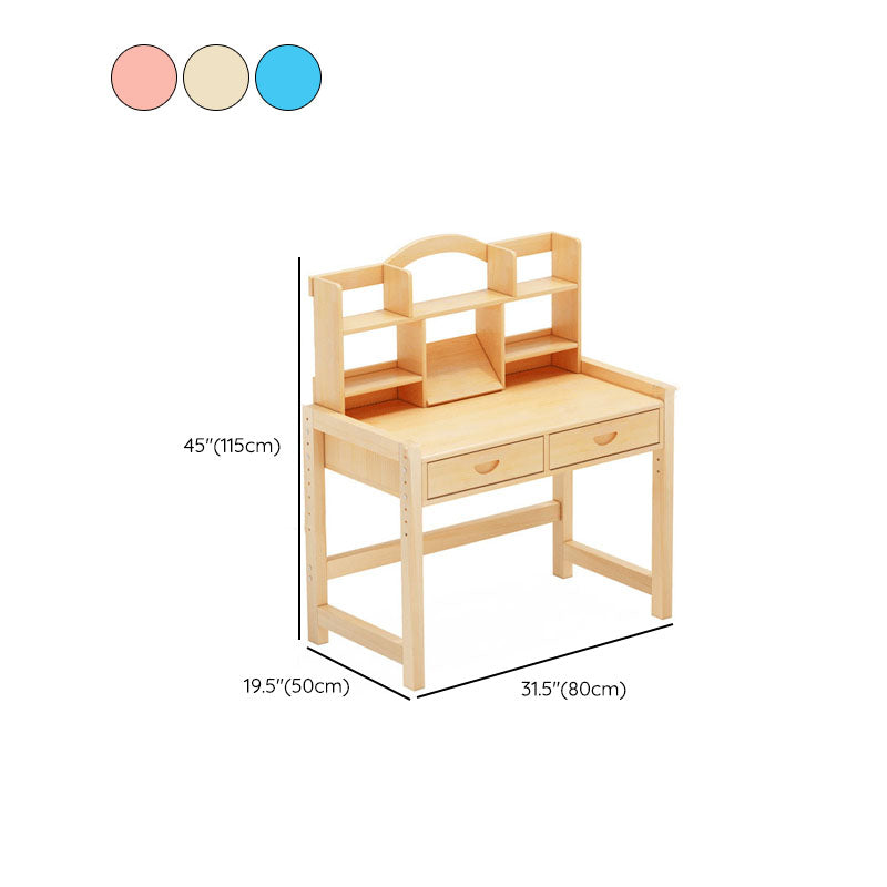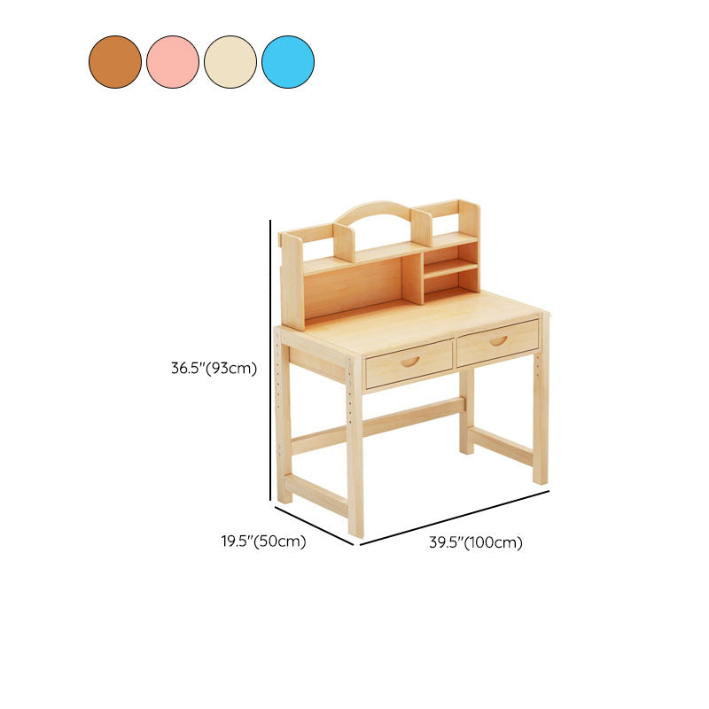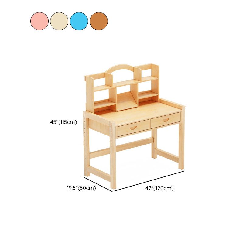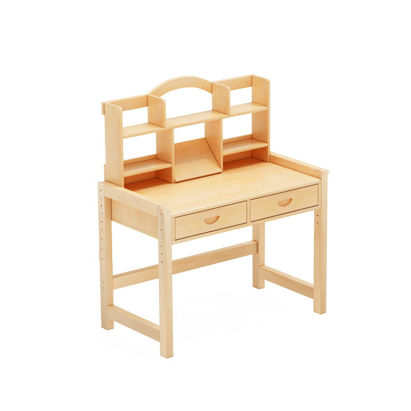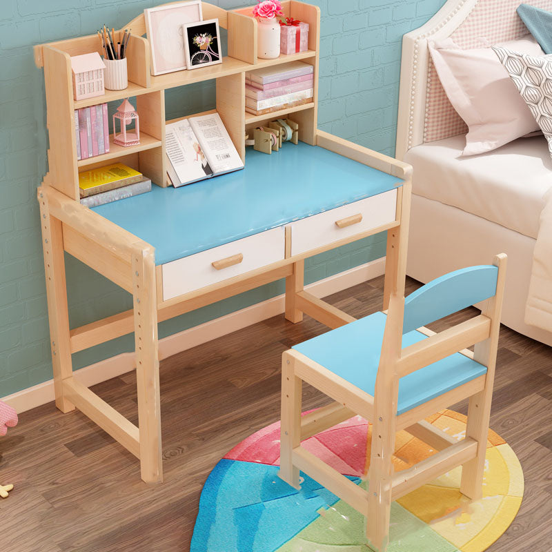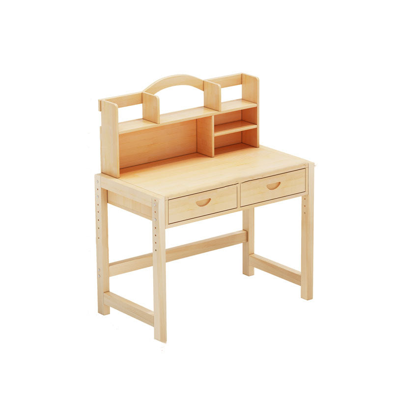 Pine Solid Wood Study Desk Table and Chair Set with Storage Shelves