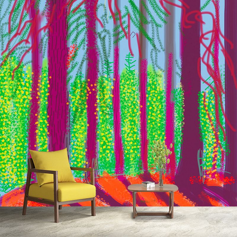 Purple-Green Forest Sunrise Mural Wallpaper Stain Resistant Wall Art for Living Room