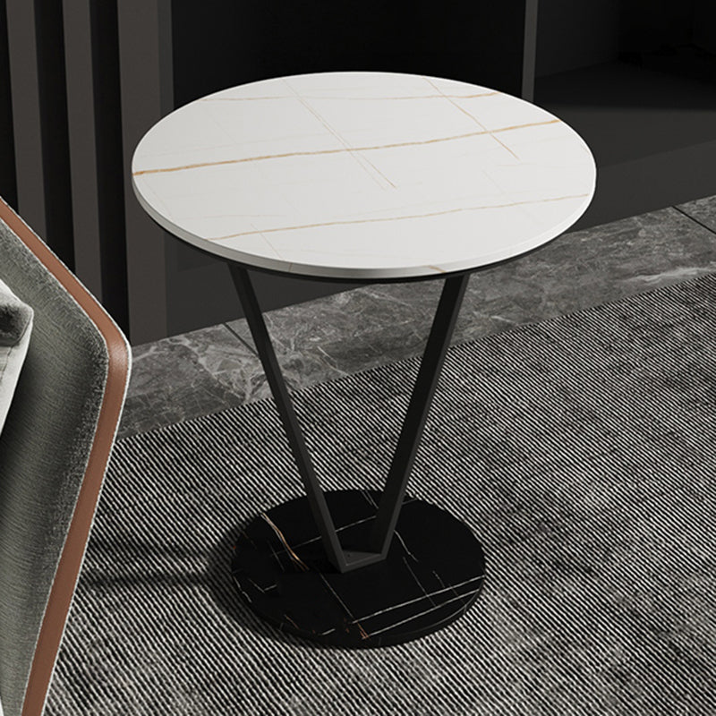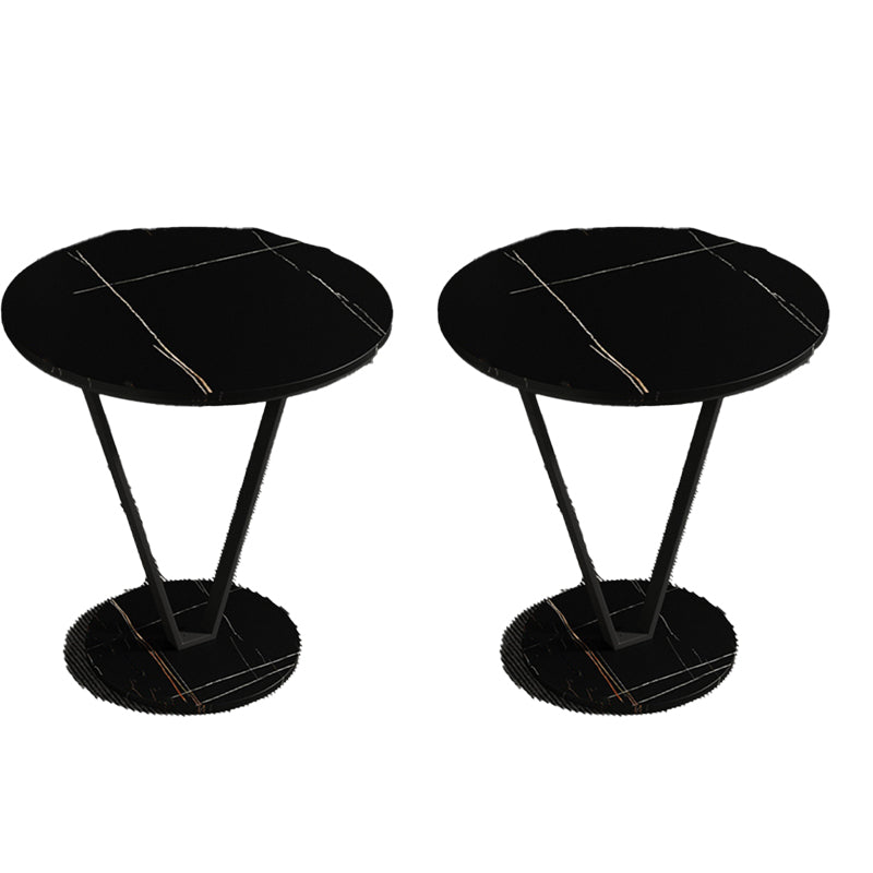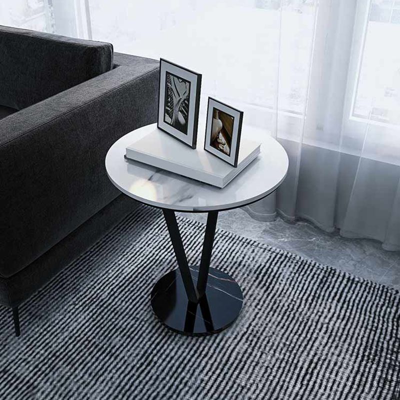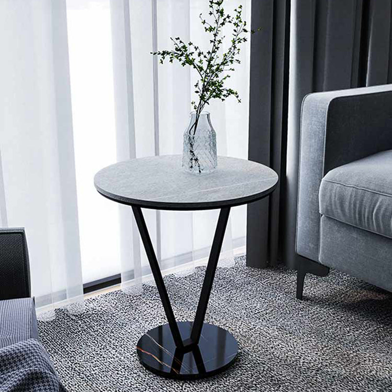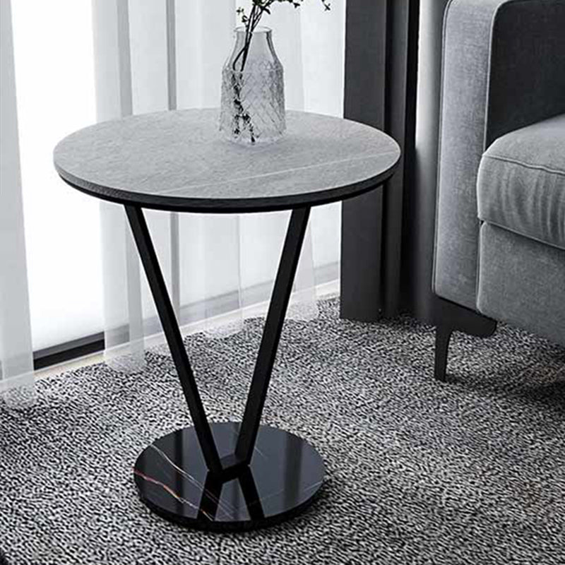 Round Side End Table with Slate Top, Contemporary Frame End Table