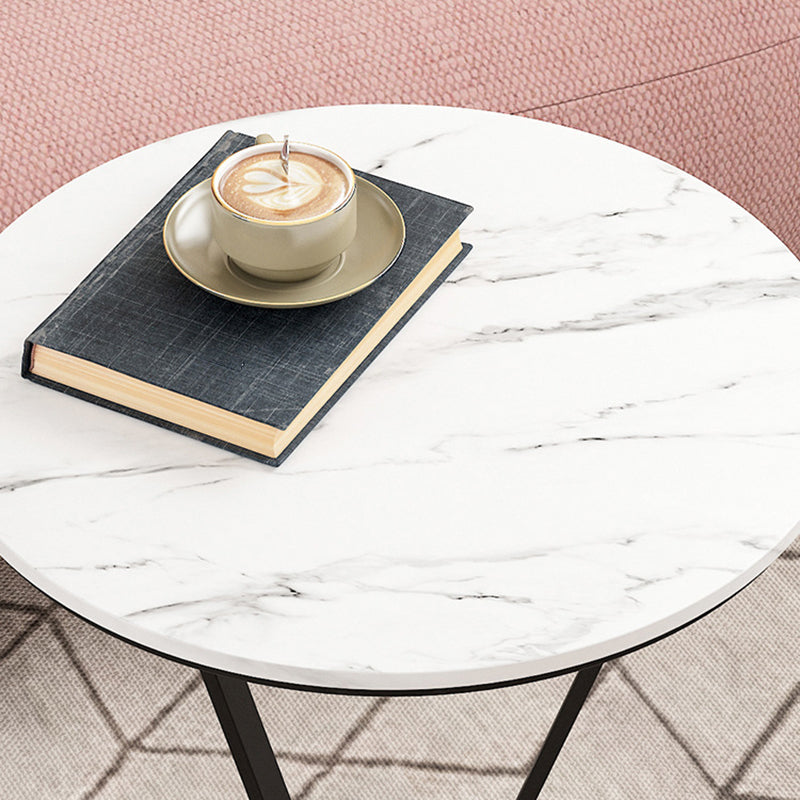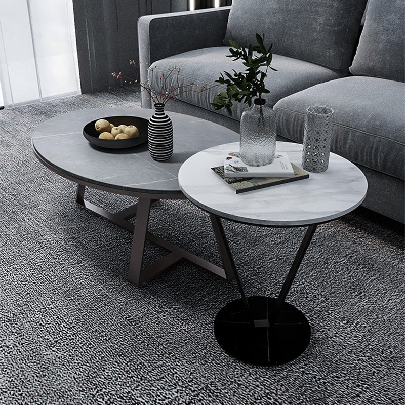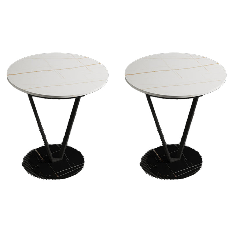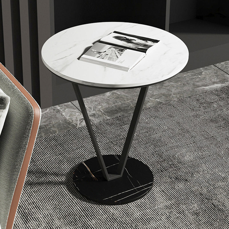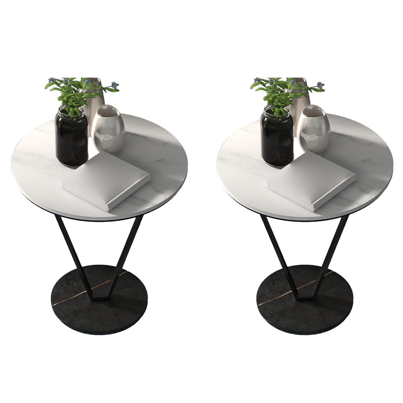 Round Side End Table with Slate Top, Contemporary Frame End Table