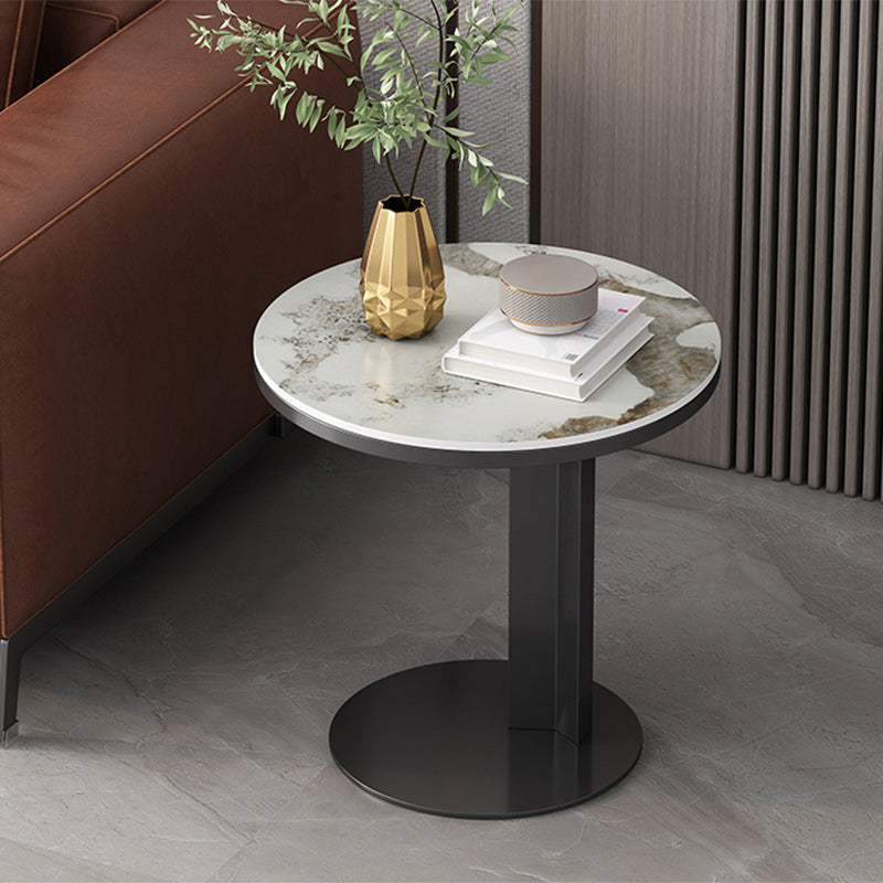 Rustic Sofa Side Accent Table Metal Pedestal Round Living Room Corner Table