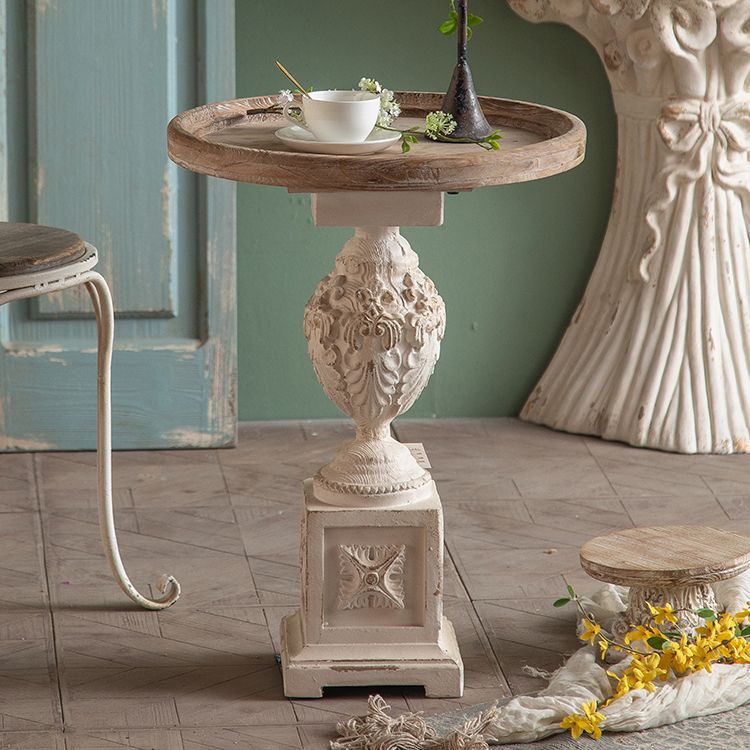 Rustic Style Side End Table Pedestal Distressed Round Sofa Side Accent Table