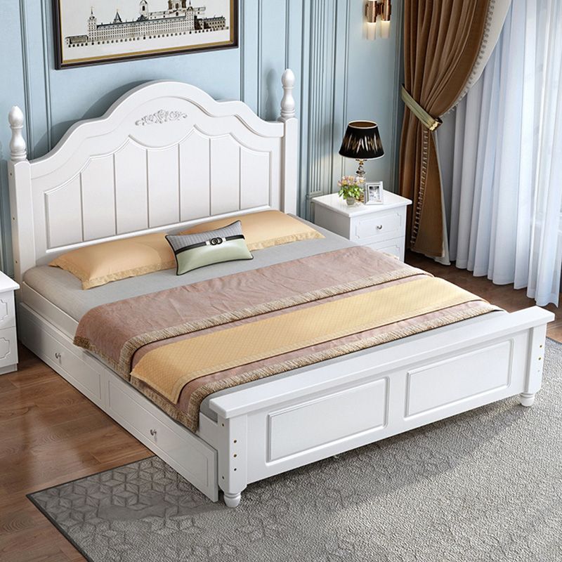 Solid Wood Panel Bed Contemporary White Standard Bed with 2 Drawers