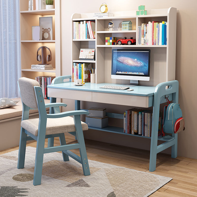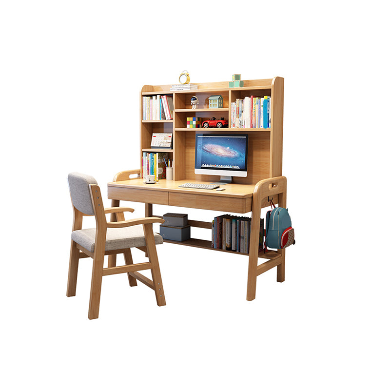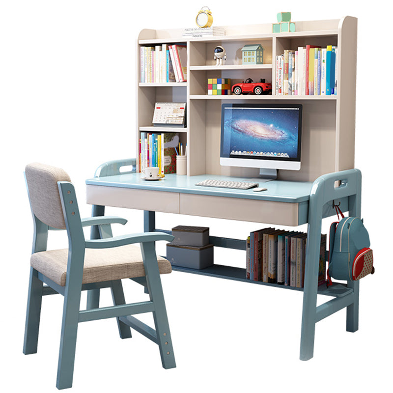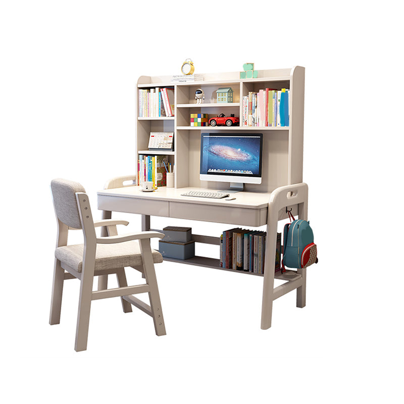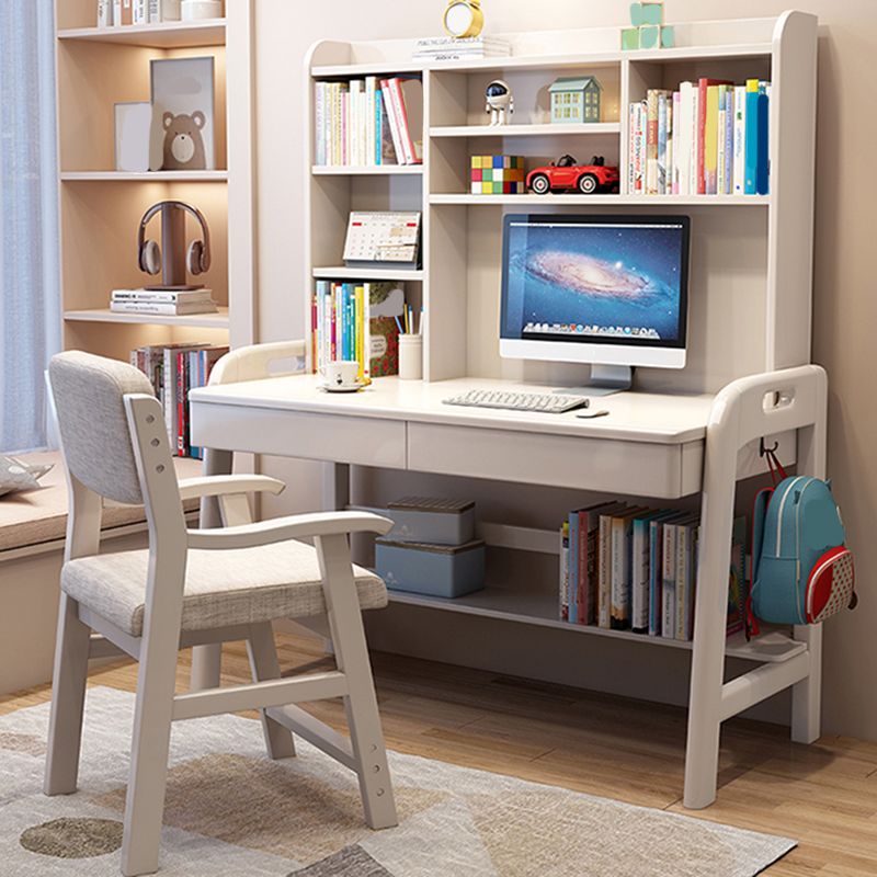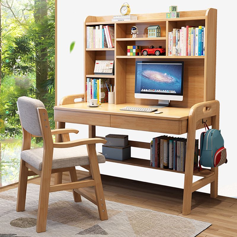 Solid Wood Study Desk Home Table and Chair Set with Storage Drawer