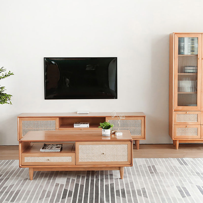 Solid Wood TV Media Console Scandinavian TV Stand with Drawer