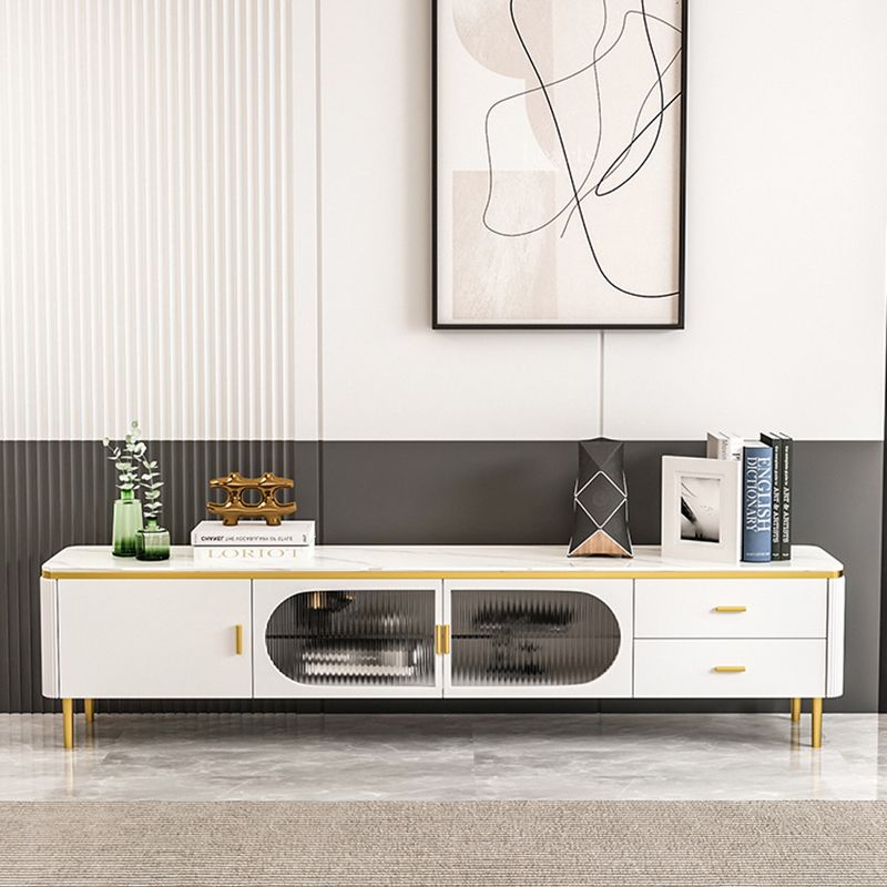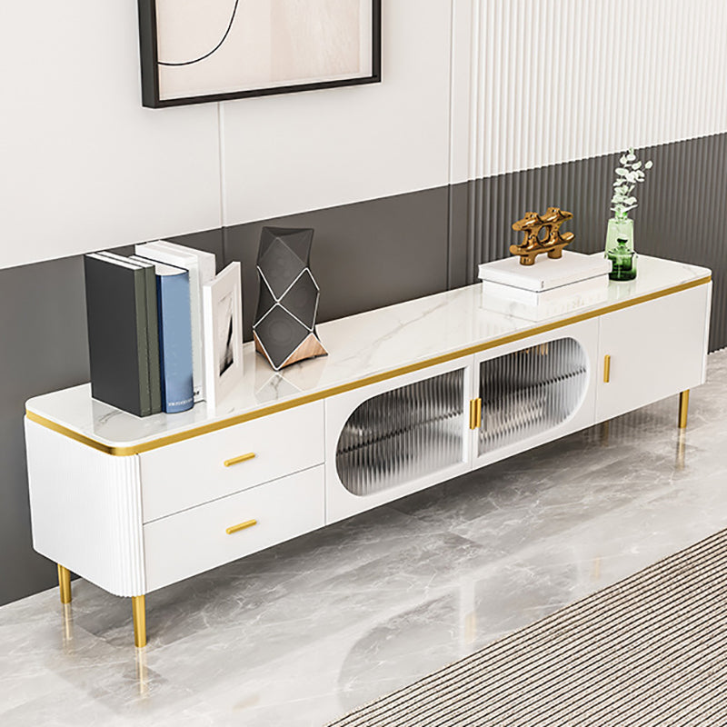 Stone Media Console Enclosed Storage TV Stand Console with Drawers