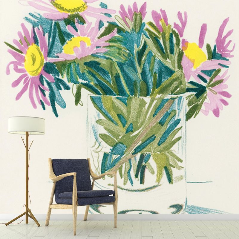 Whole Daisies Wall Paper Mural Water Resistant Artistic Living Room Wall Covering