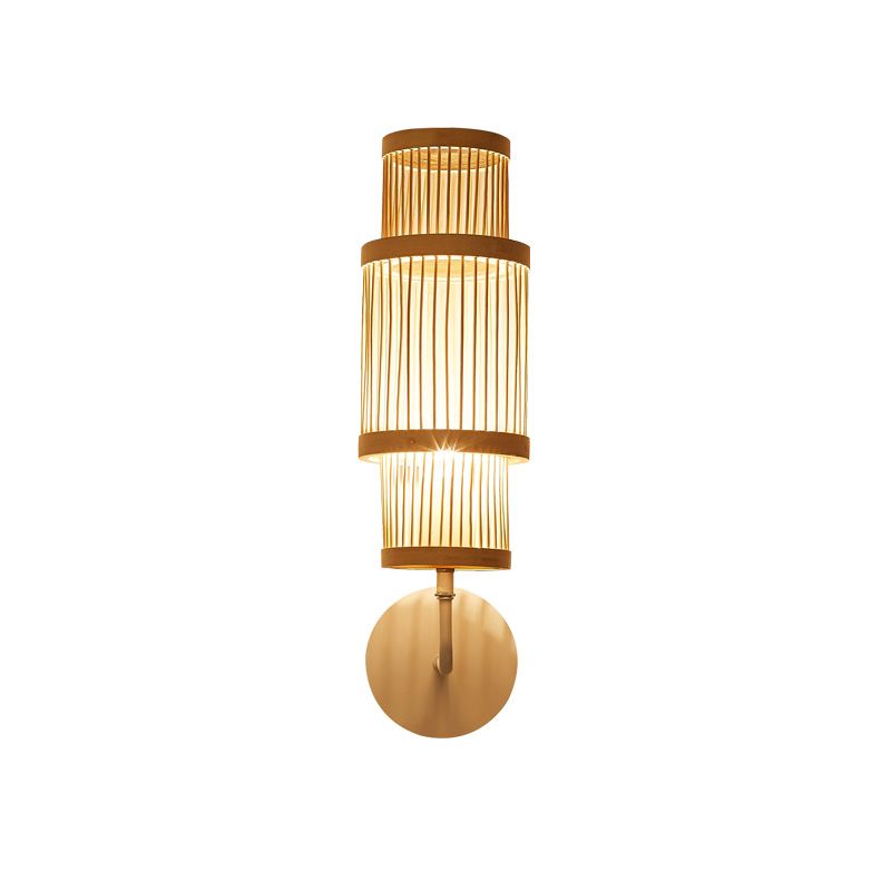 Barrel Bamboo Wall Light Minimalist 1 Head Wood Wall Lighting Fixture for Restaurant