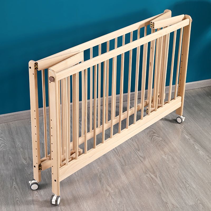 2-in-1 Folding Wooden Crib Natural Baby Crib with Mattress and Casters