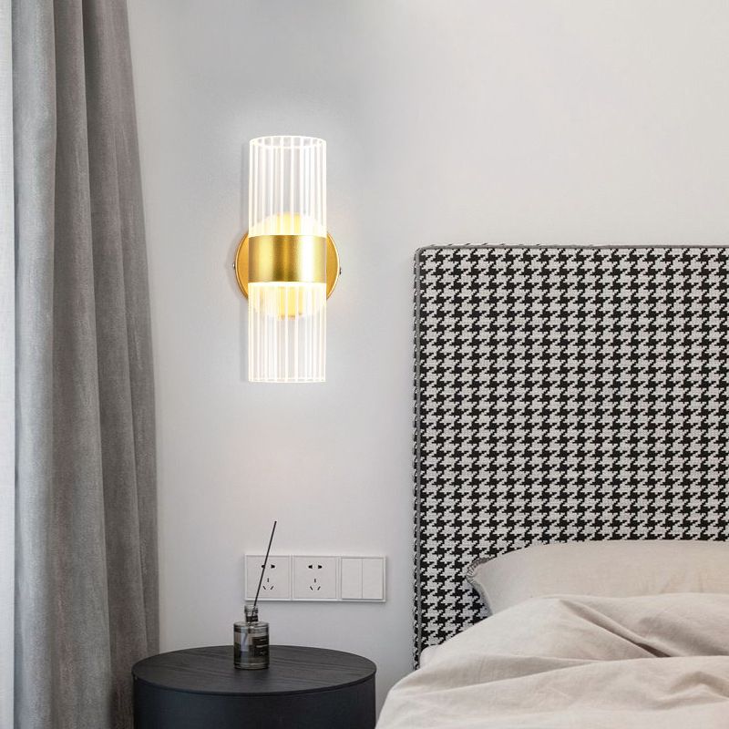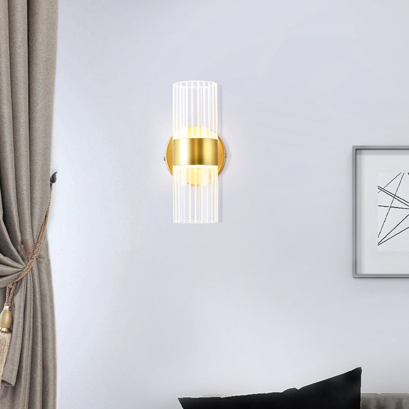 2-Light Cylinder Sconce Light Fixture Modern Glass Wall Light