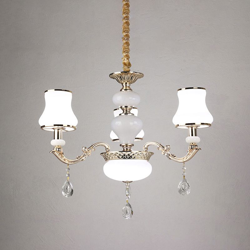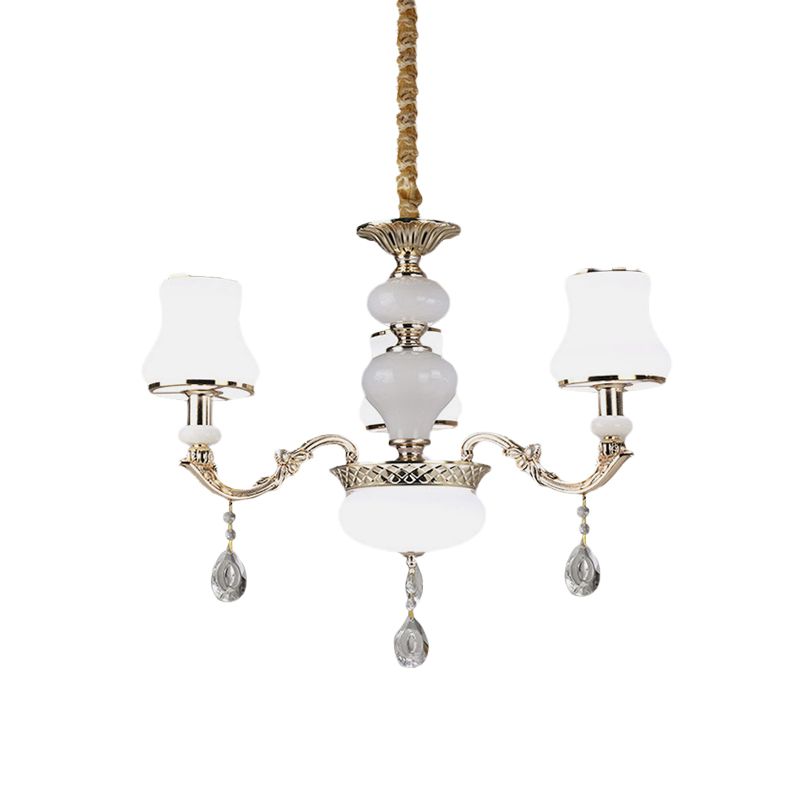 3/6 Lights Chandelier Lighting Vintage Bedroom Ceiling Pendant with Jar Cream Glass Shade in Gold