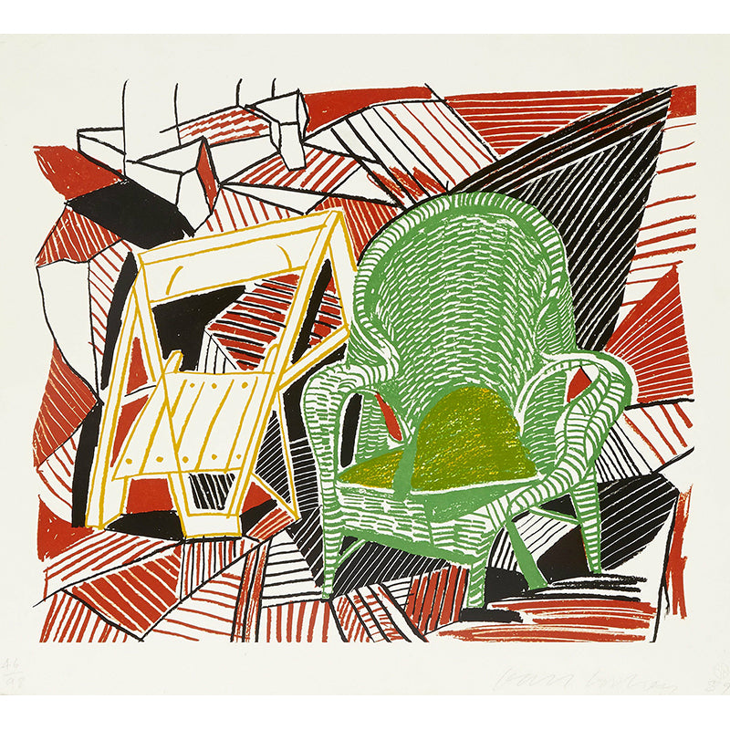 Artistic Abstract Chair Wall Murals Red-Green Stain Resistant Wall Covering for Living Room