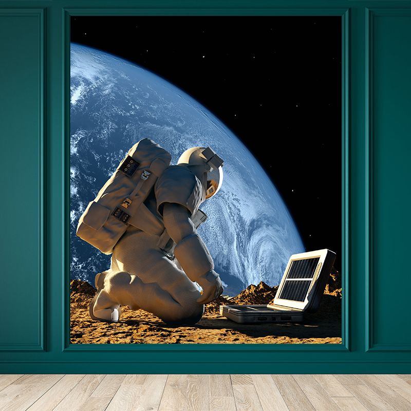 Astronaut and Earth View Mural Wallpaper Fictional Non-Woven Cloth Wall Covering