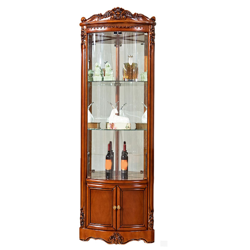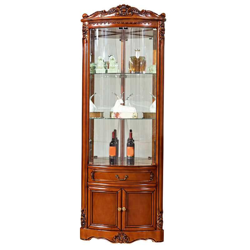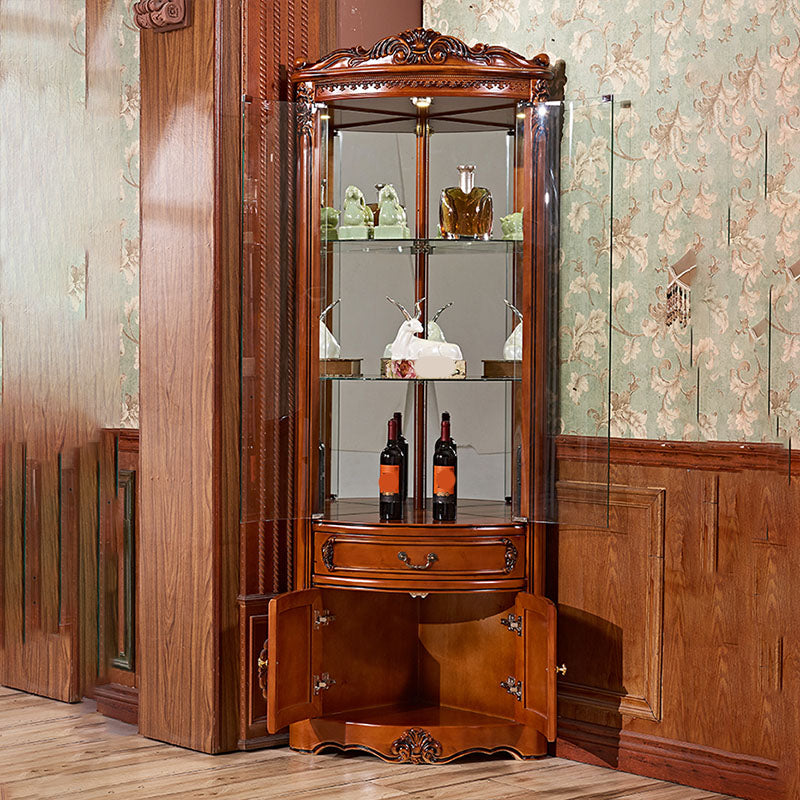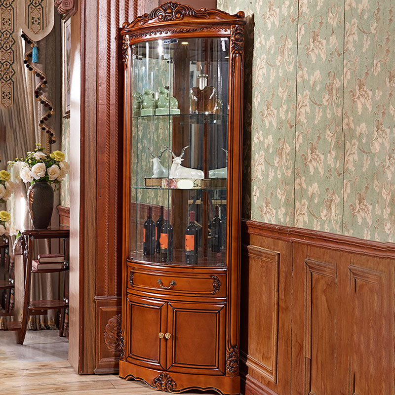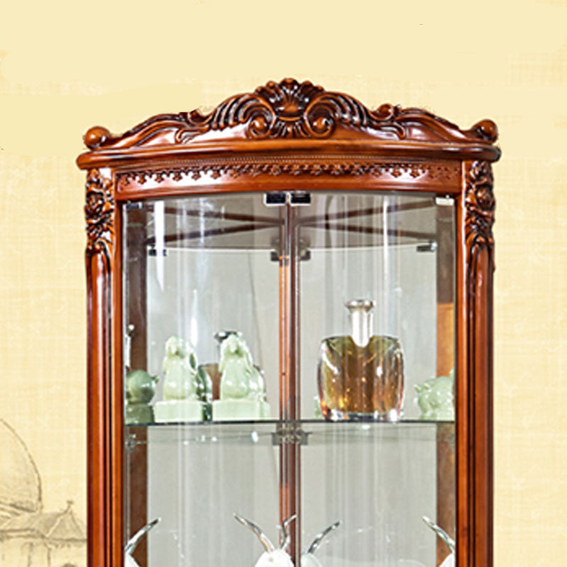Glass Paned Solid Wood Rustic Knobs Accent Cabinet with Doors