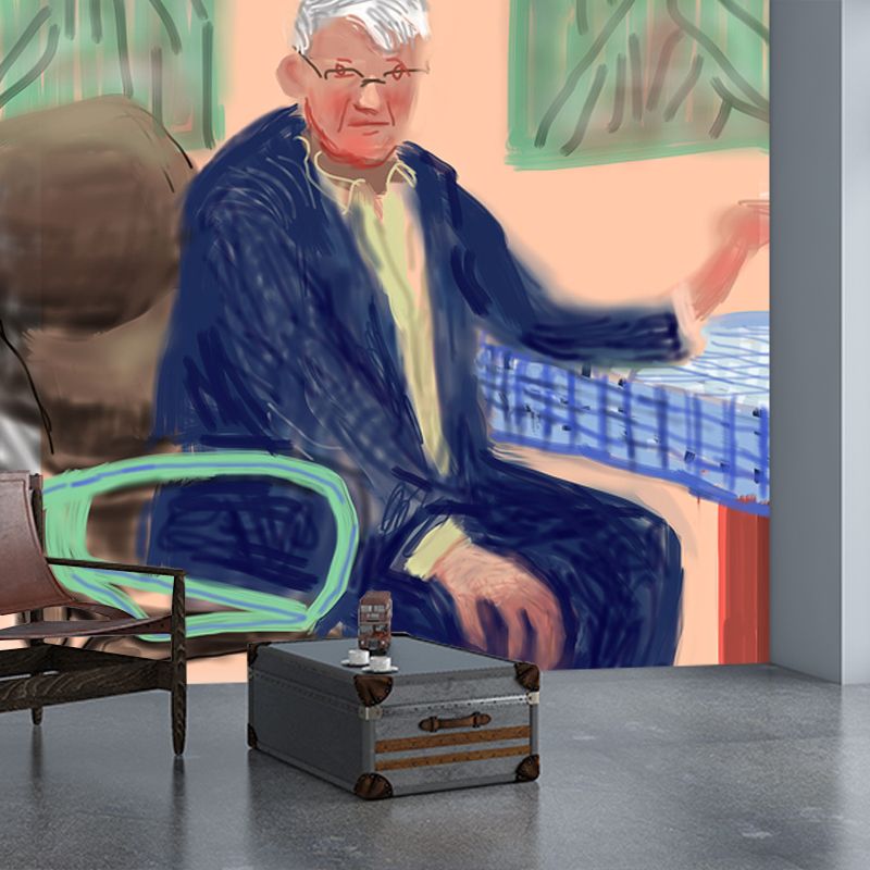 Hockney Self-Portrait Mural Art Deco Stain Proof Hallway Wall Covering, Custom Printed