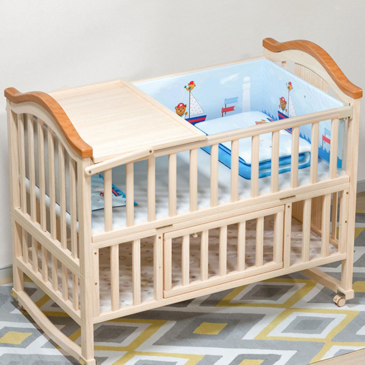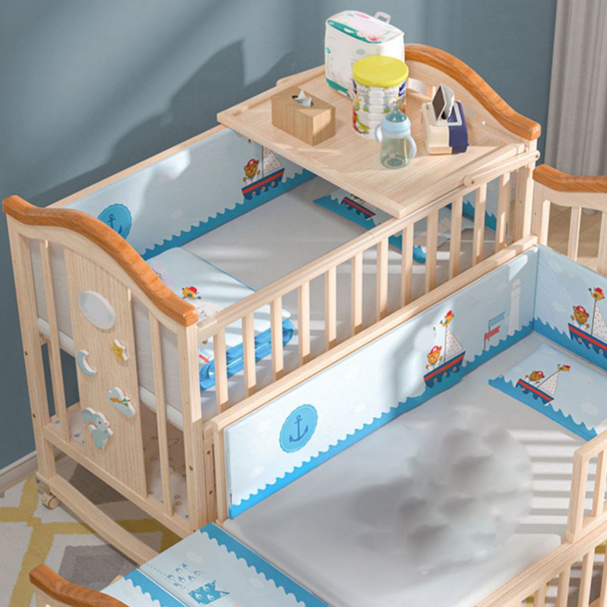 Light Wood Pine Nursery Crib Modern Nursery Crib with Casters/Wheels