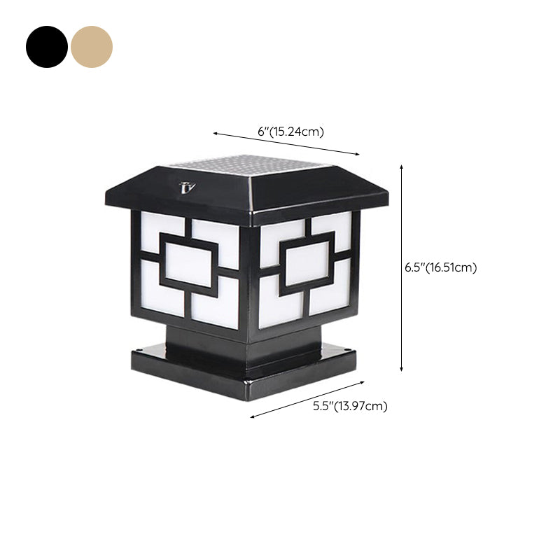 Metal Contemporary Pillar Lamp Square Shape Outdoor Waterproof Light with Acrylic Shade