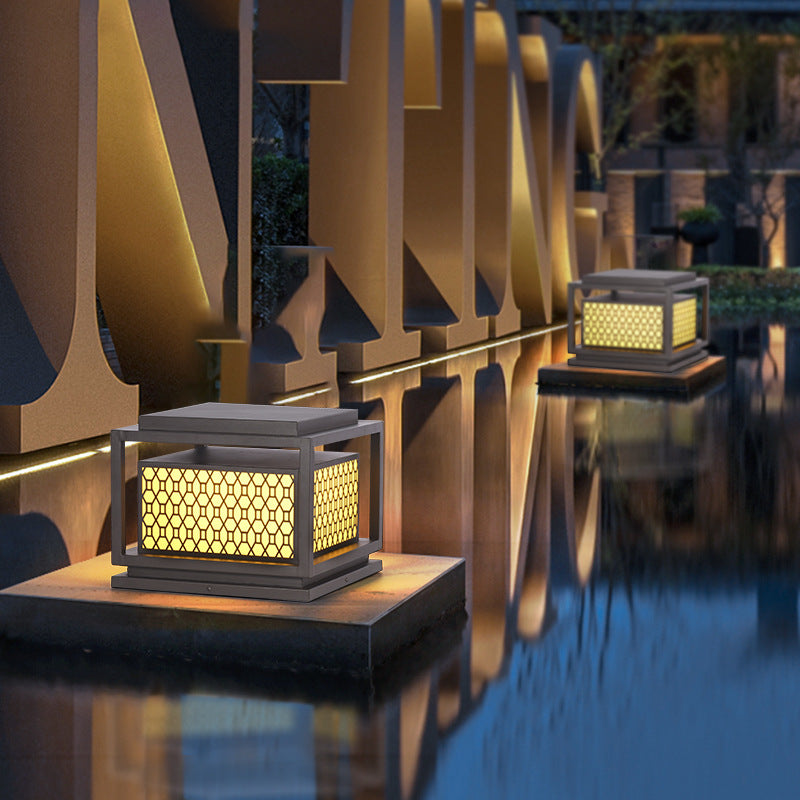 Metal Rectangle Shape Solar Pillar Lamp Modern 1 Light Outdoor Waterproof Light in Brown