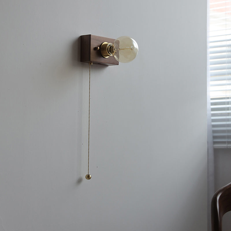 Minimalist Wall Sconce Exposed Bulb Wooden Sconce Light for Bedroom
