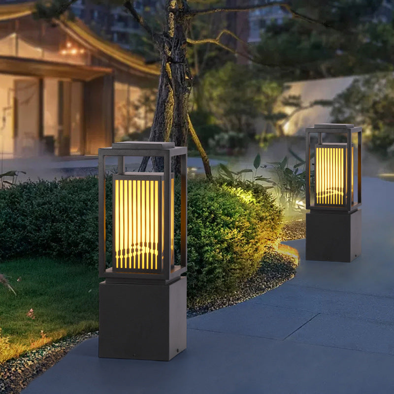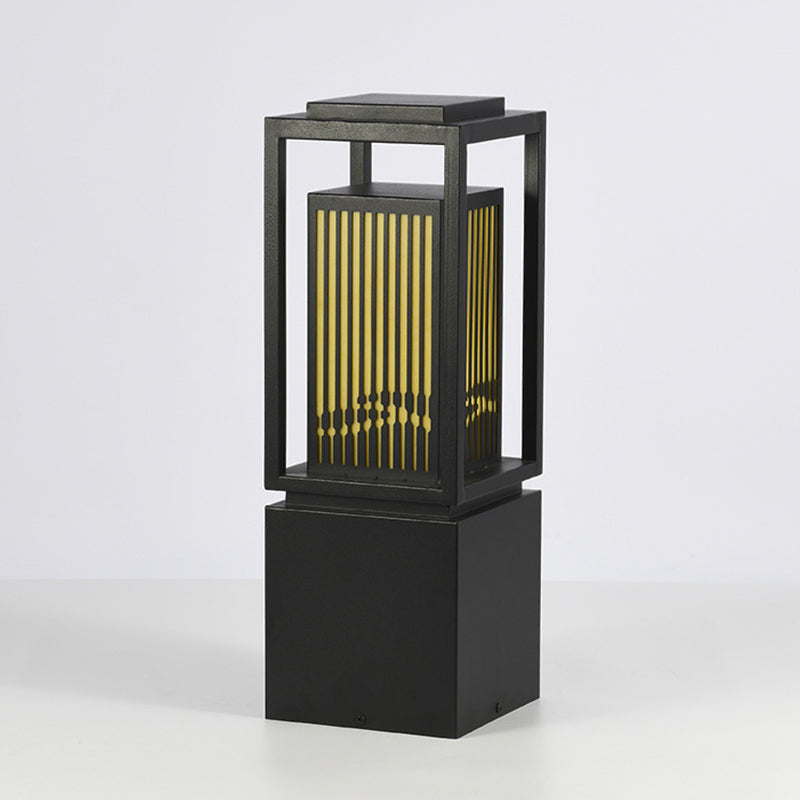 Modern Metal Solar Pillar Lamp Rectangle Shape Outdoor Waterproof Light in Black