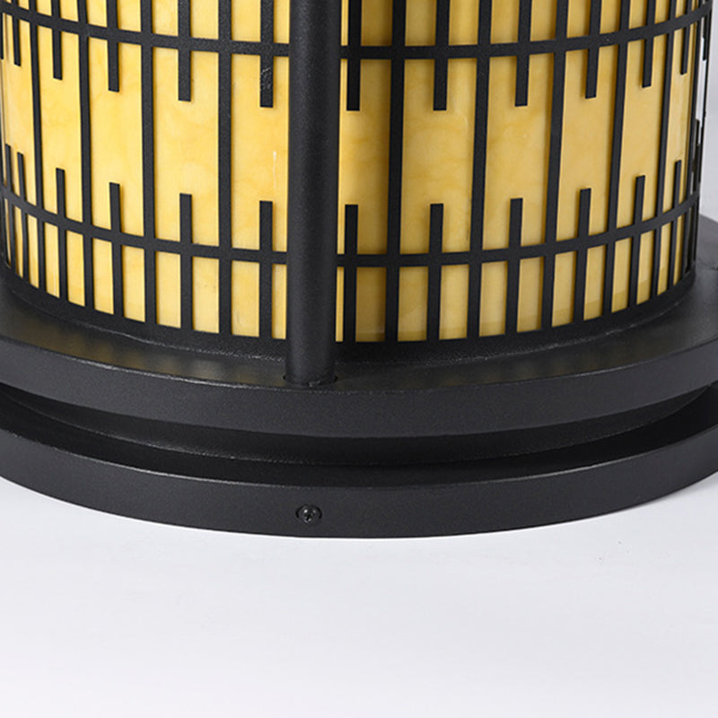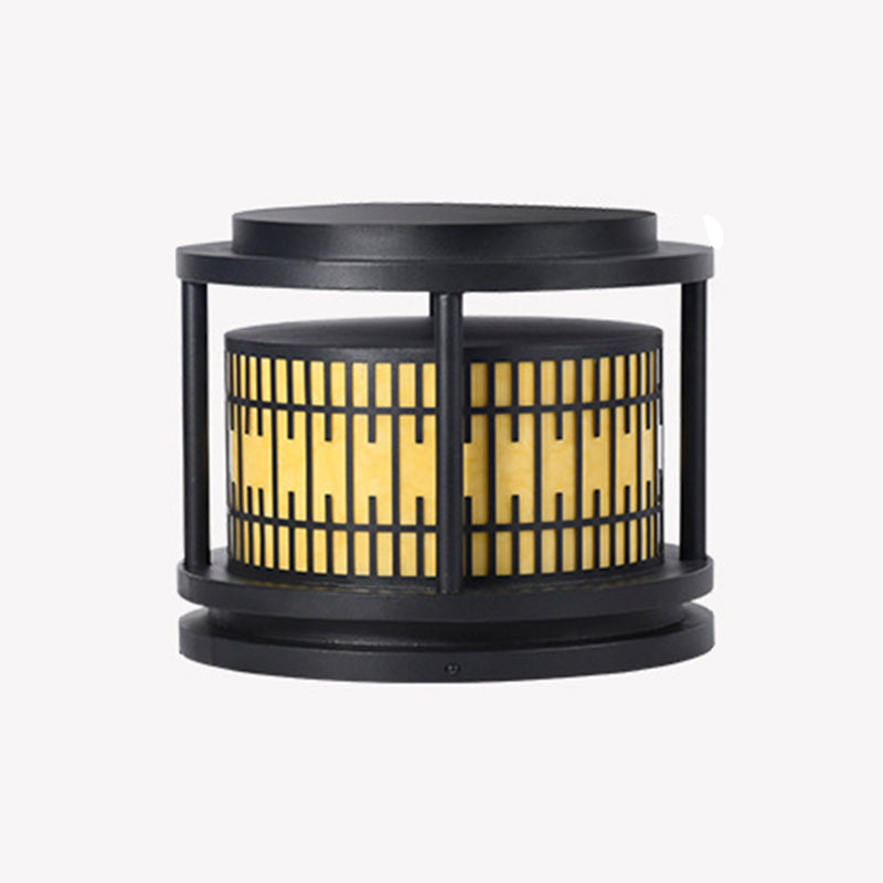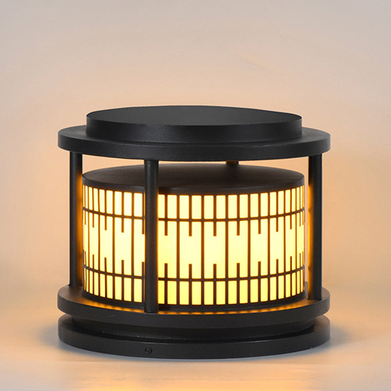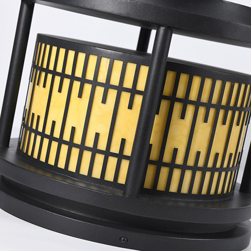 Modern Metal Solar Pillar Lamp Round Shape Outdoor Waterproof Light in Black