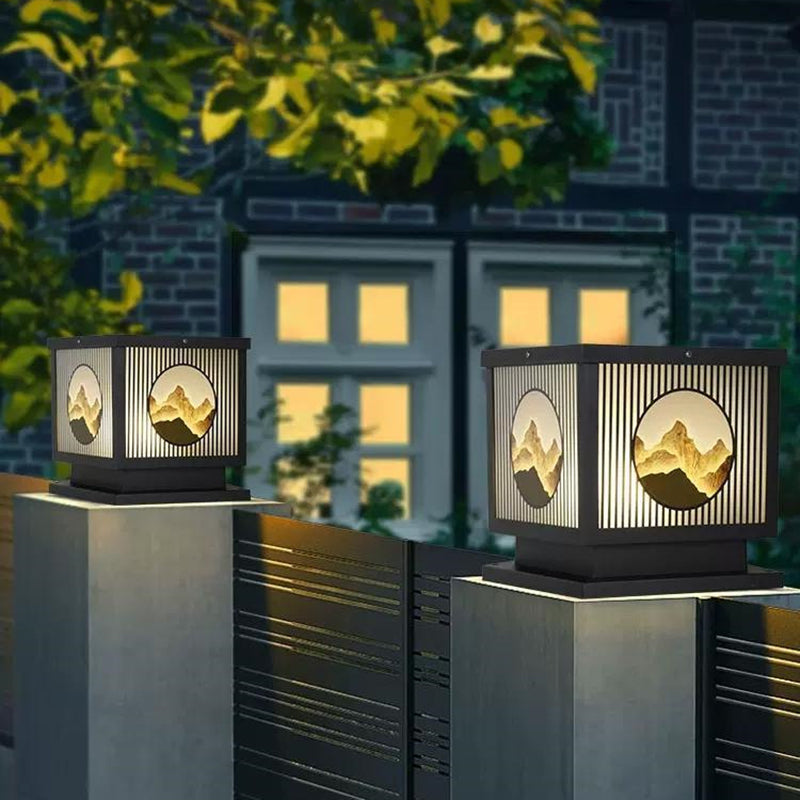 Modern Metal Solar Pillar Lamp Square Shape Outdoor Waterproof Light in Black