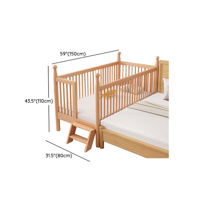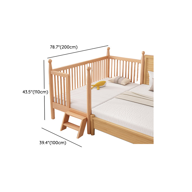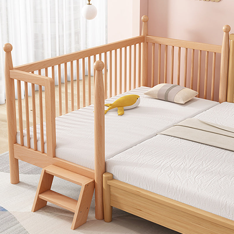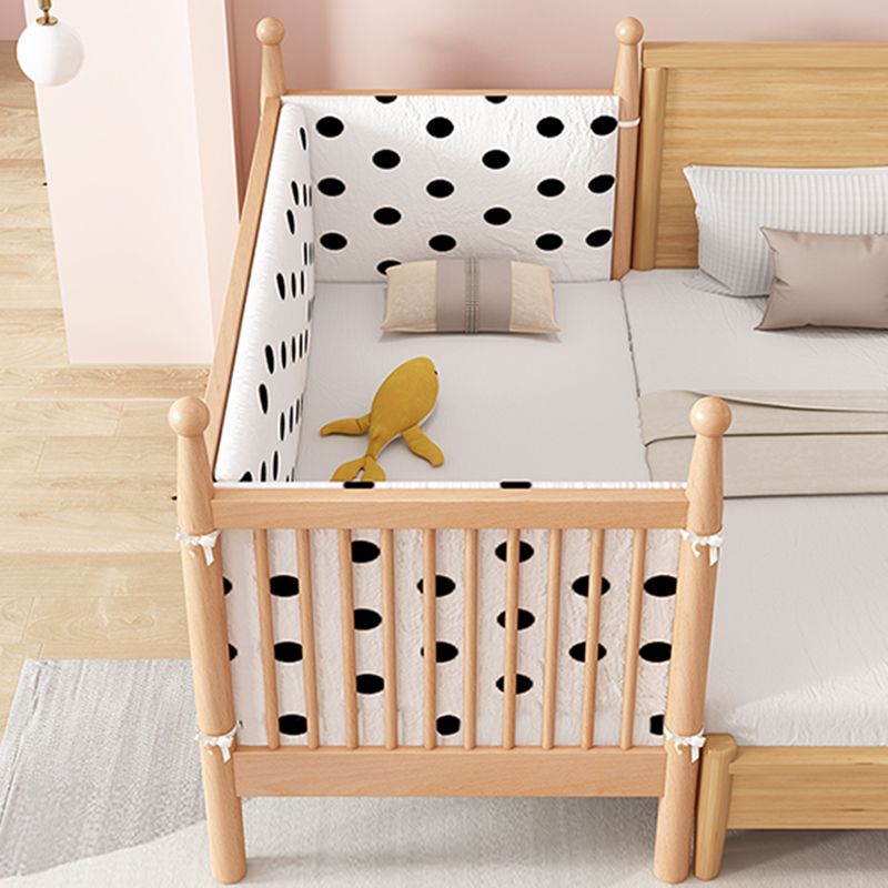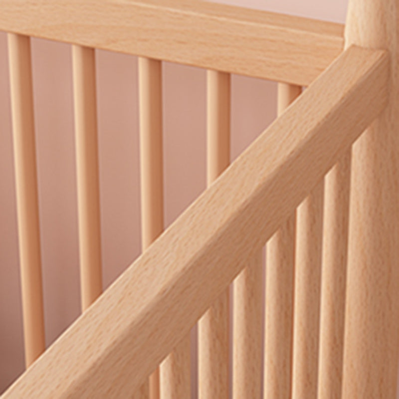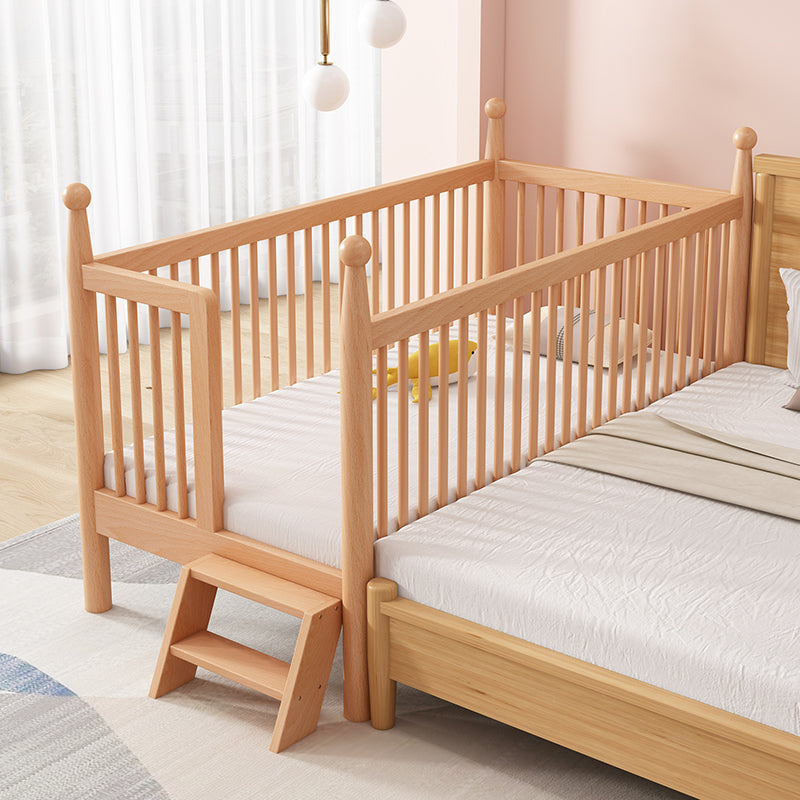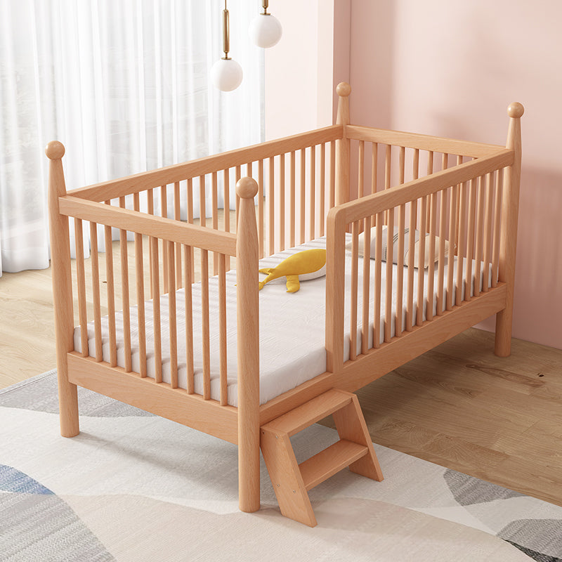 Naitural Nursery Crib with Guardrail Farmhouse Baby Crib in Solid Wood