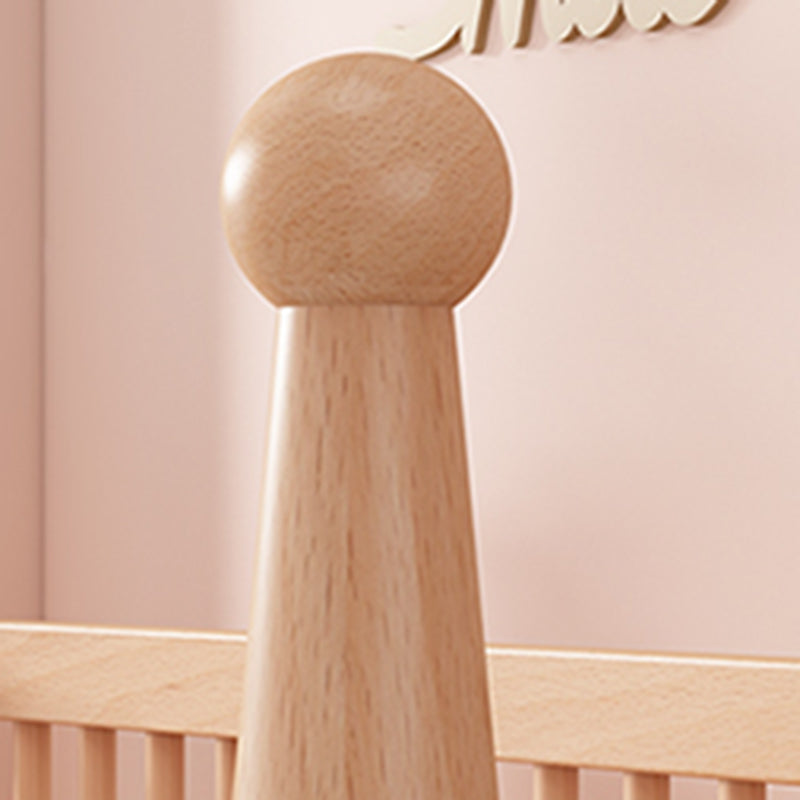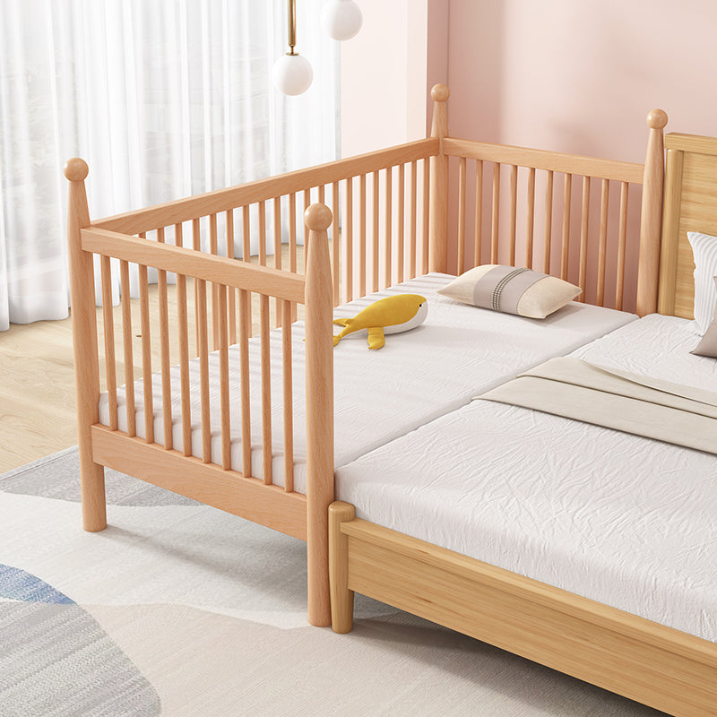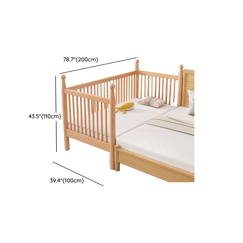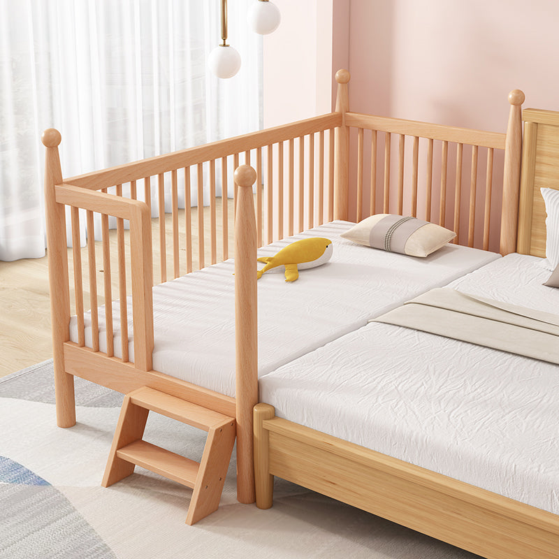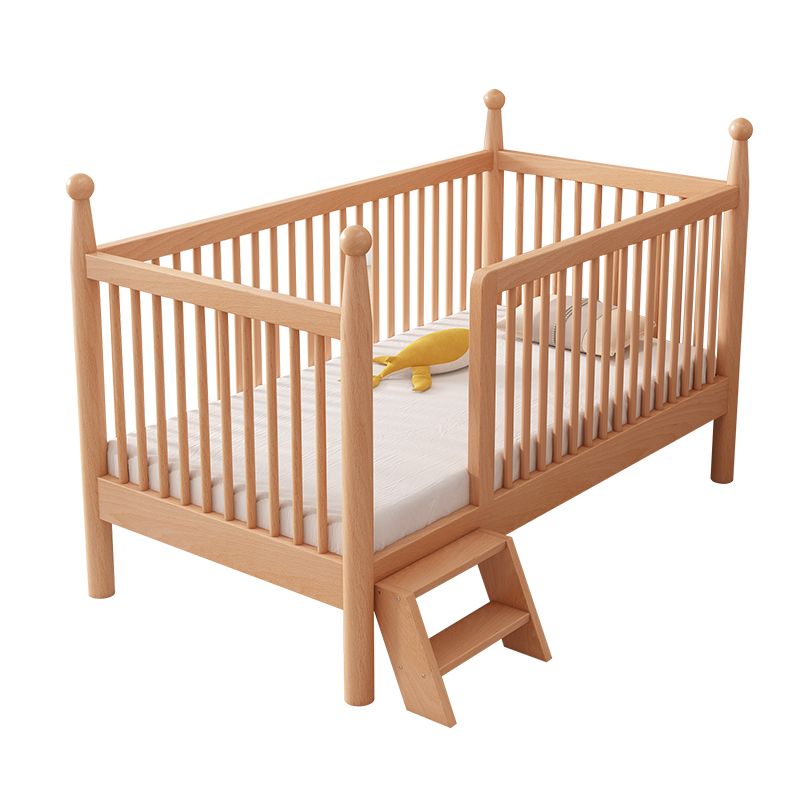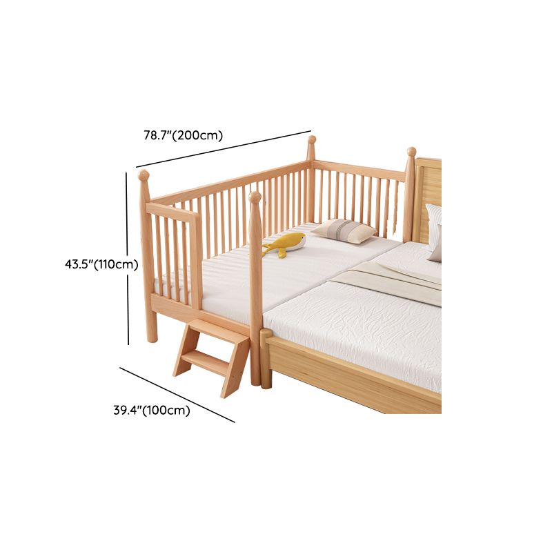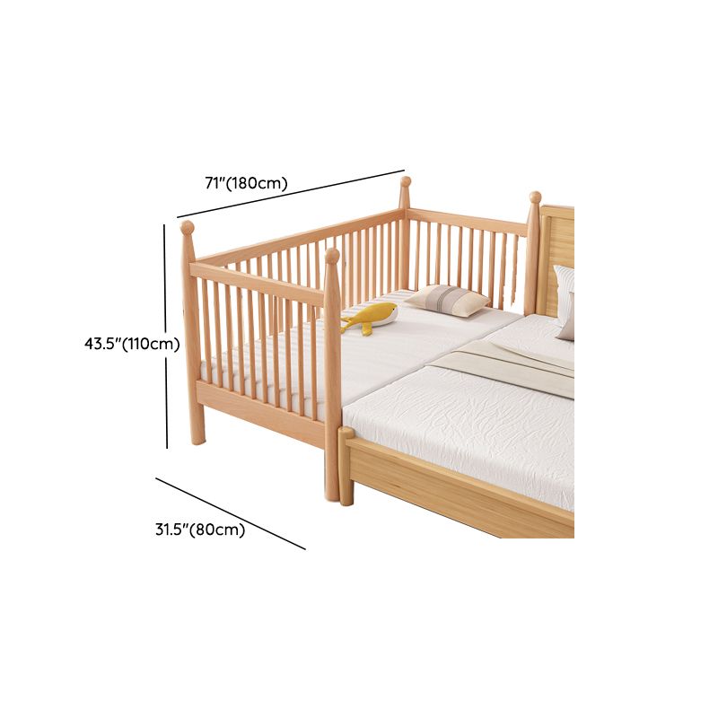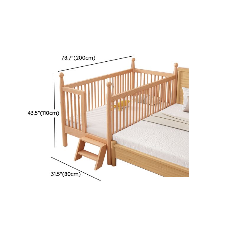 Naitural Nursery Crib with Guardrail Farmhouse Baby Crib in Solid Wood