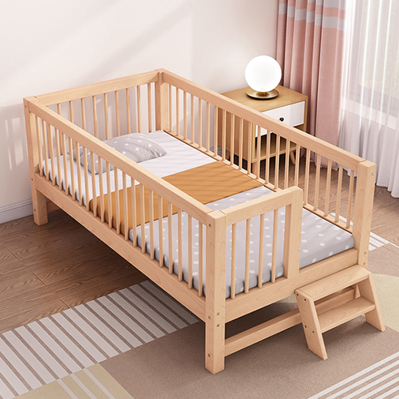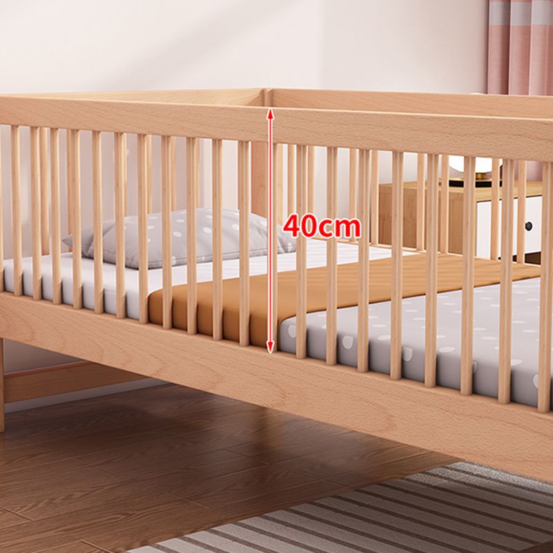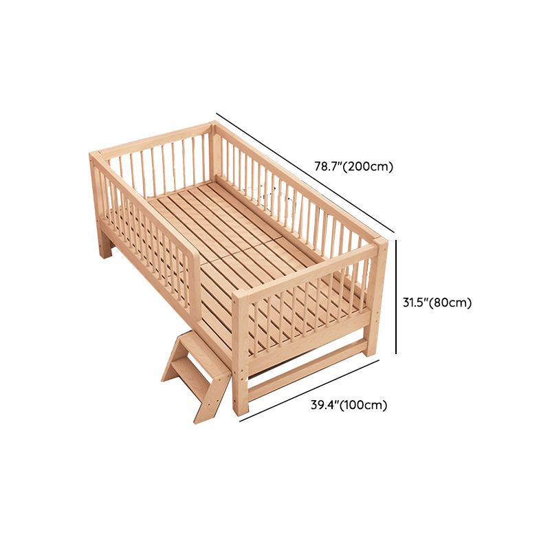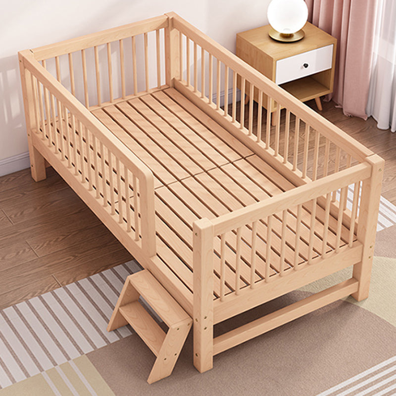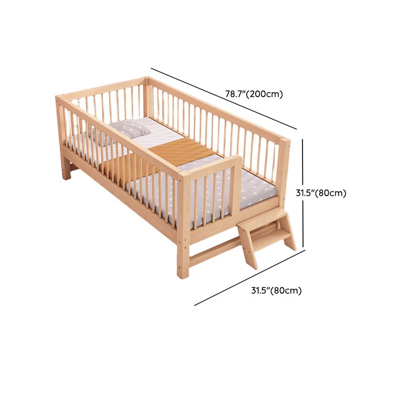 Natural Farmhouse Nursery Crib in Wood with Guardrail Baby Crib
