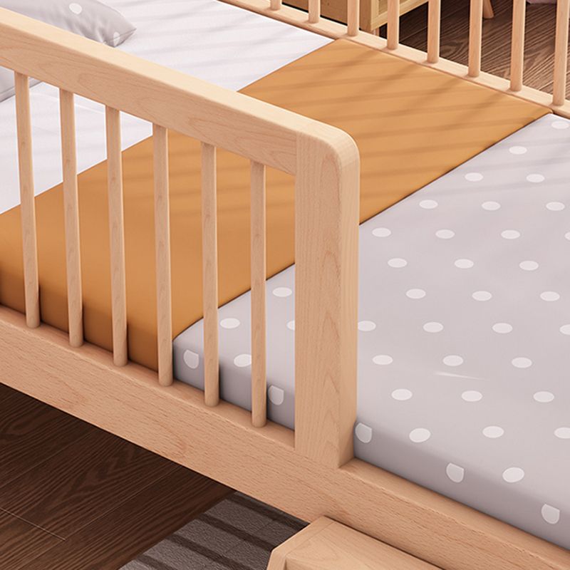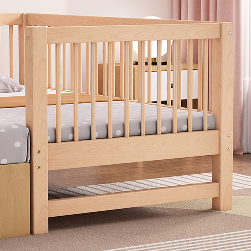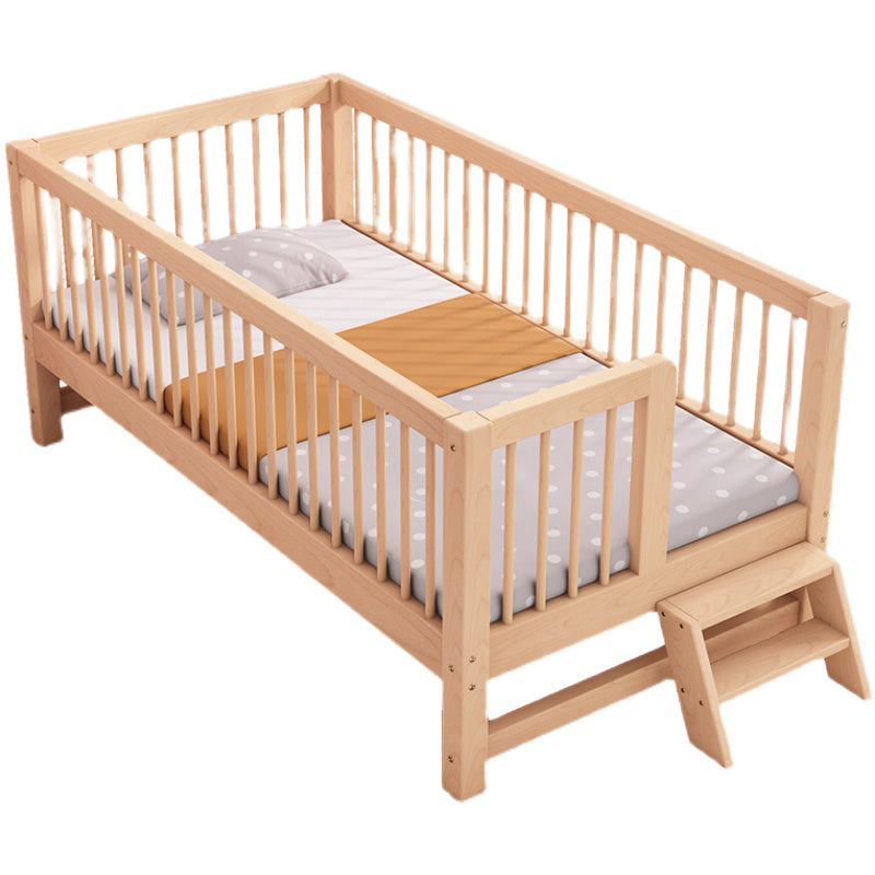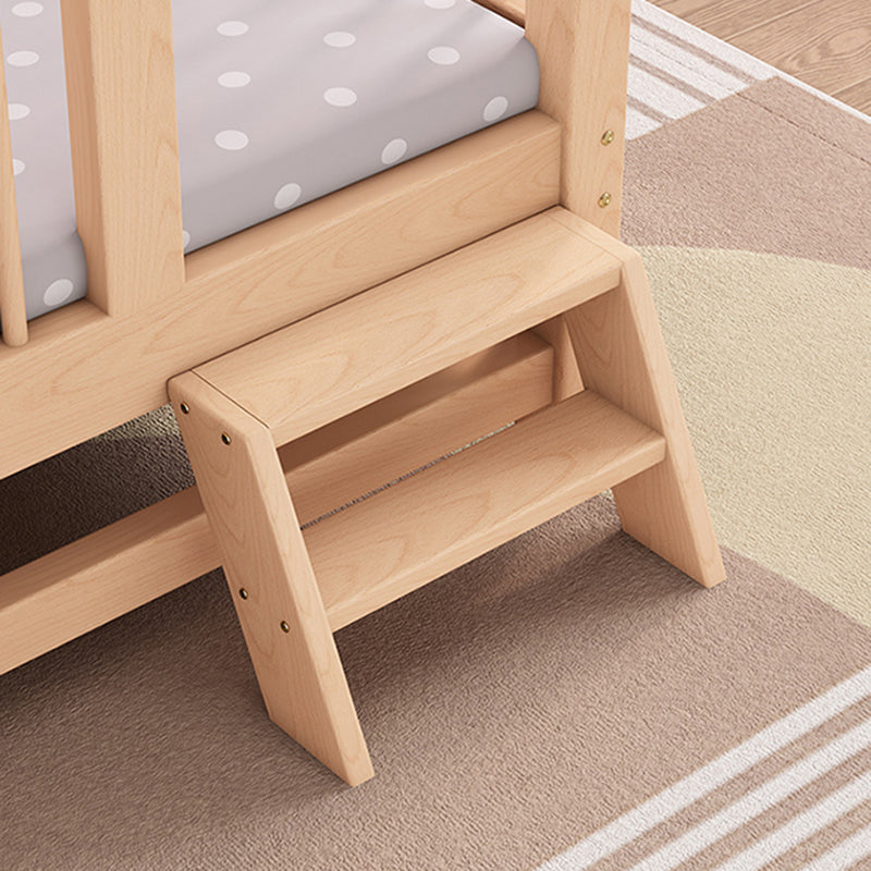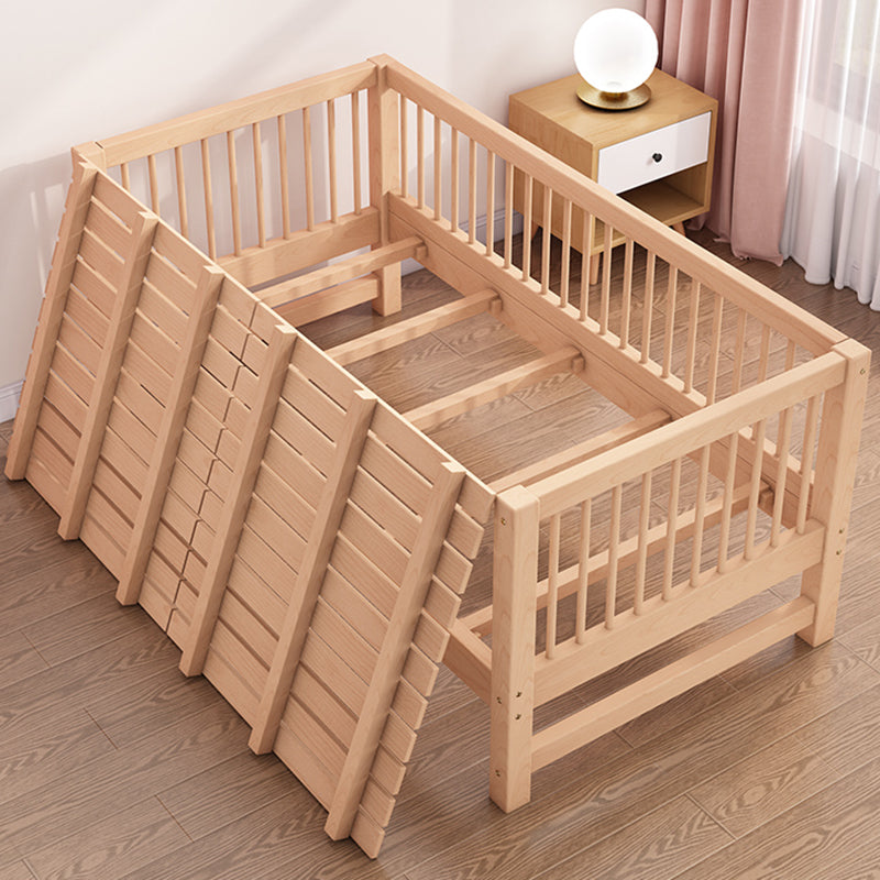 Natural Farmhouse Nursery Crib in Wood with Guardrail Baby Crib