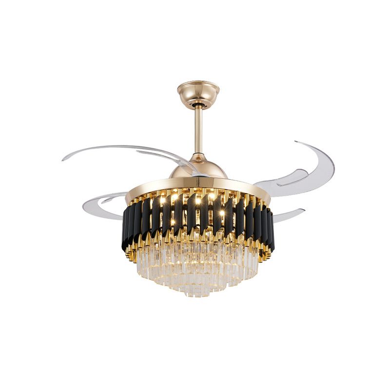 Prismatic Crystal Black-Gold Fan Light Layered Tapered Postmodern LED Semi Mount Lighting with 4 Blades, 47" Width