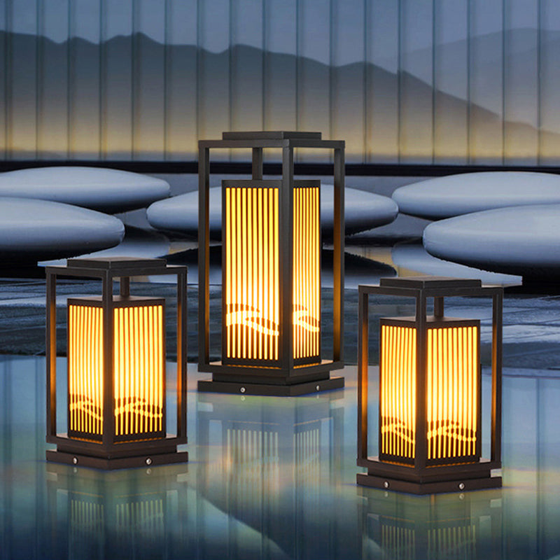 Rectangle Pillar Lamp Modern Metal Outdoor Waterproof Light in Black