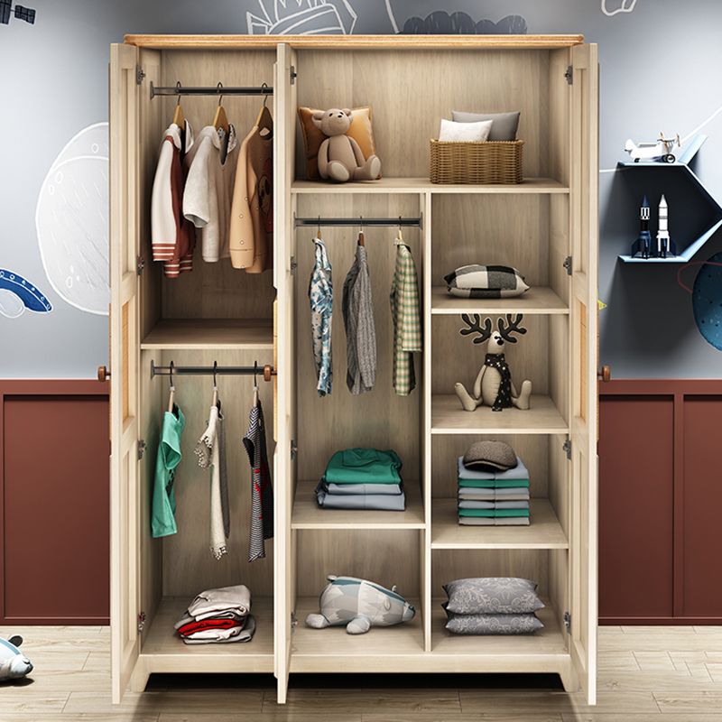 Rubberwood Solid Wood Kids Closet Modern Cloth Rod Included Wardrobe Closet