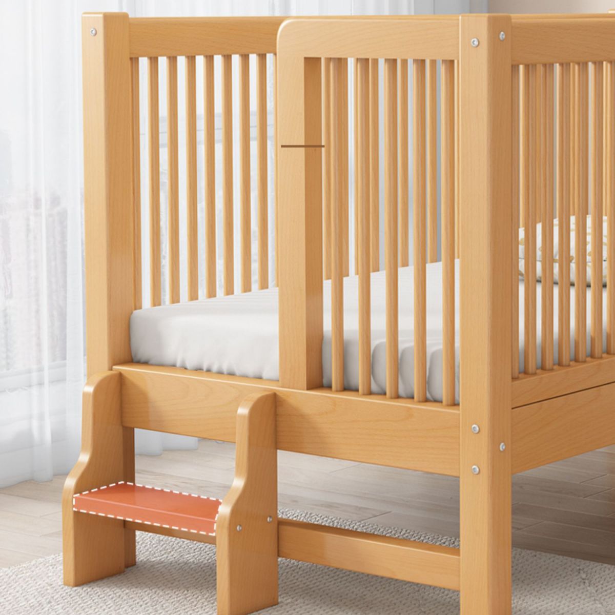 Scandinavian Beech Wood Nursery Bed Natural Nursery Crib with Guardrail