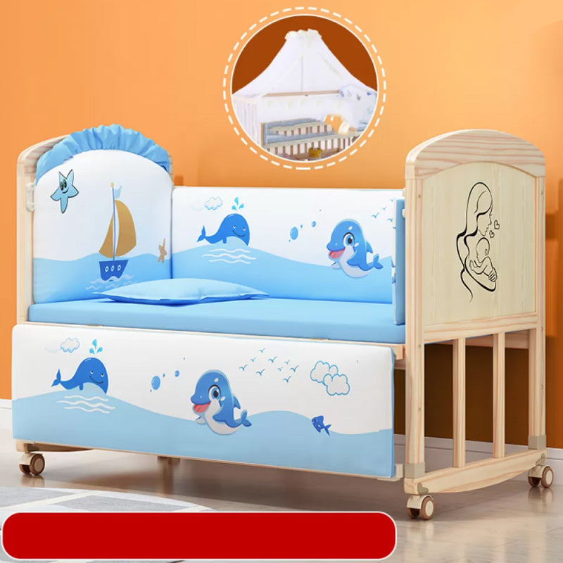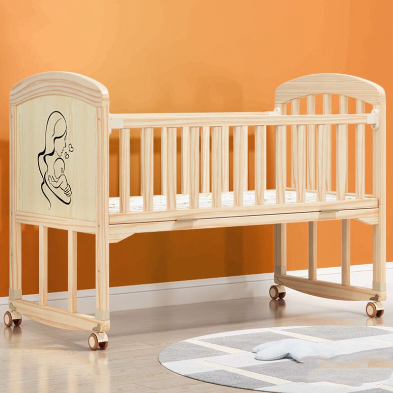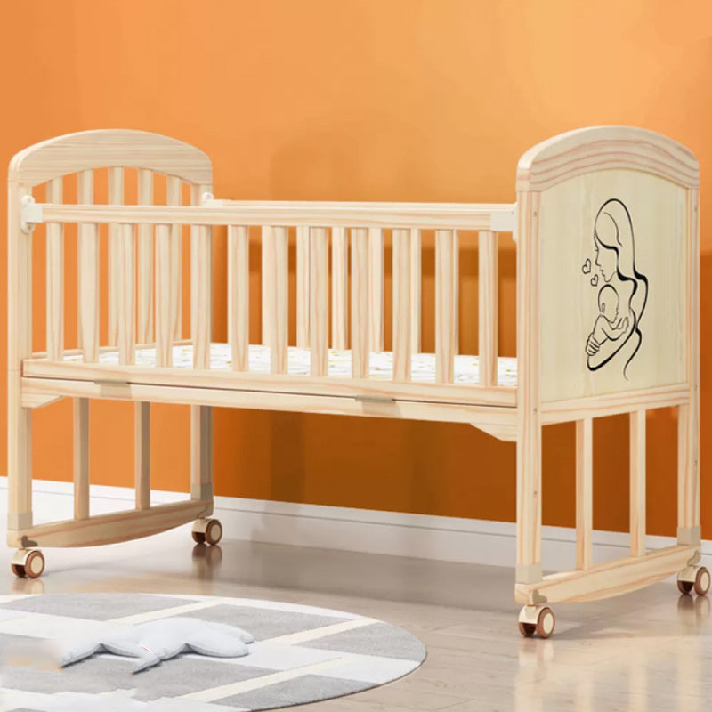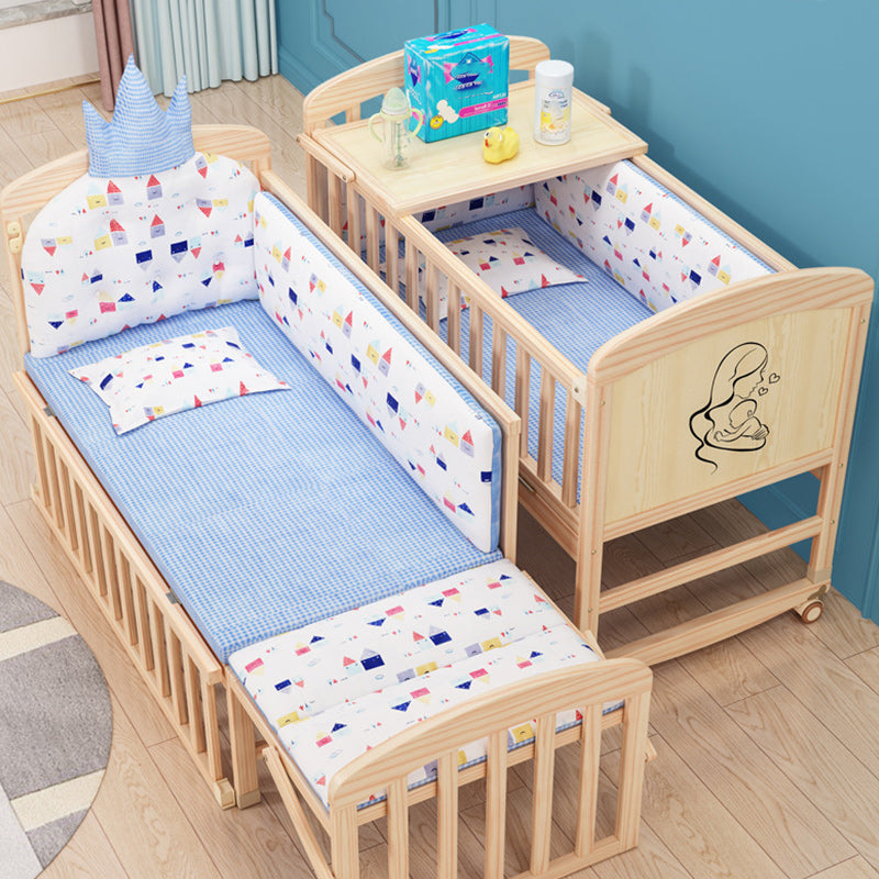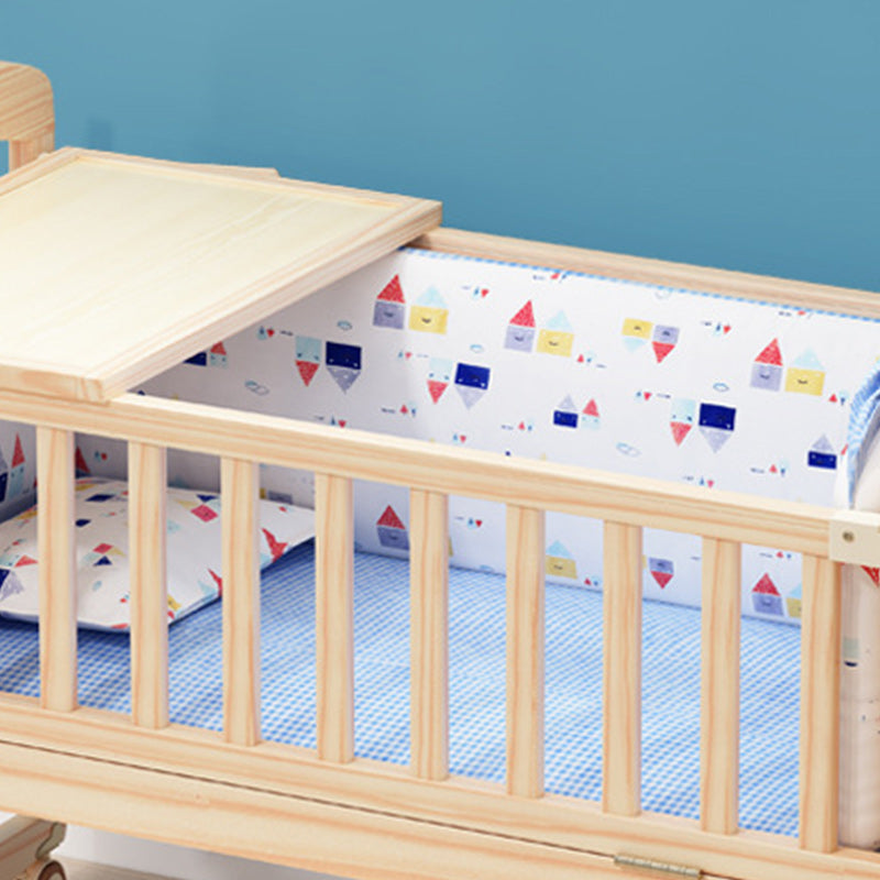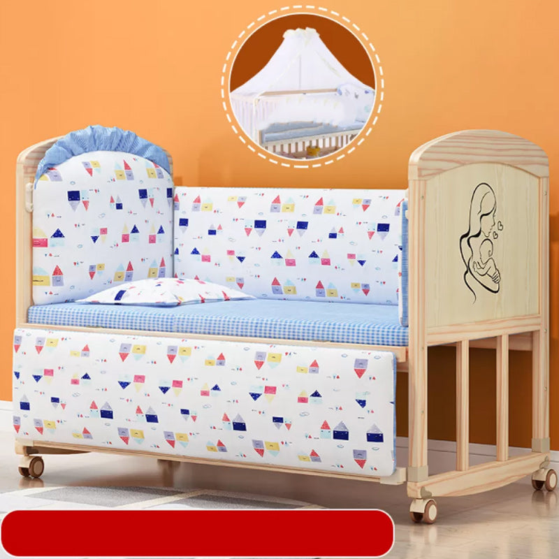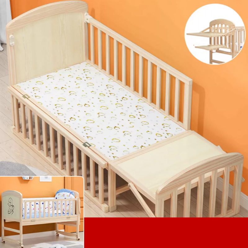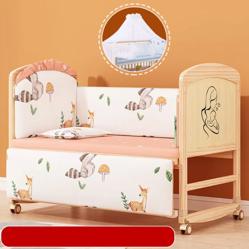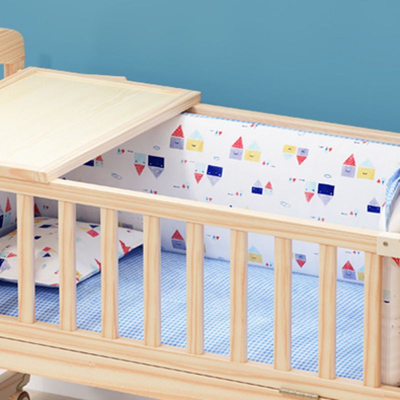 Scandinavian Solid Wood Nursery Crib Guardrail Baby Crib with Casters