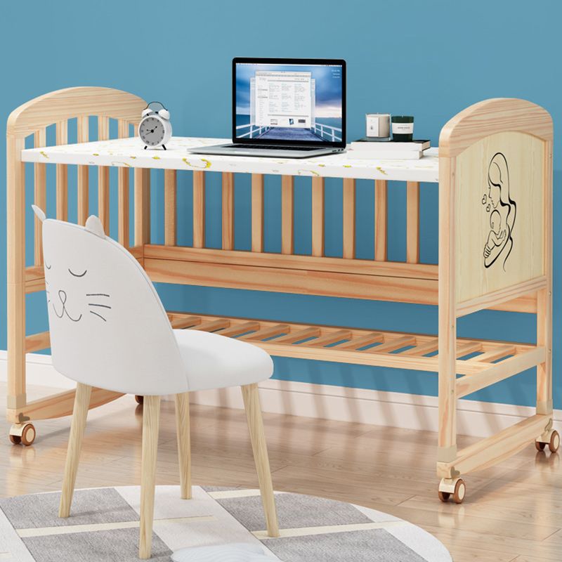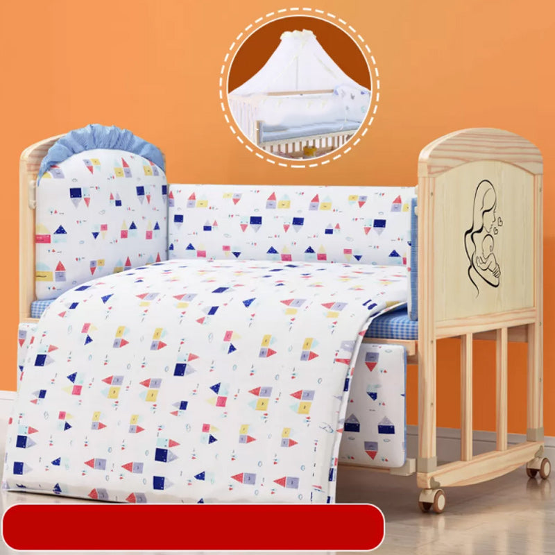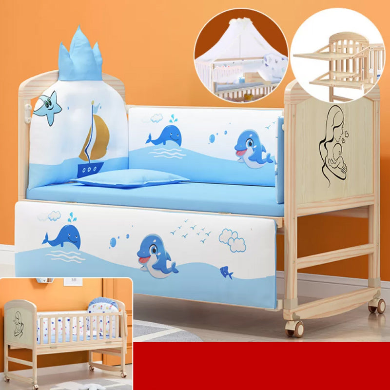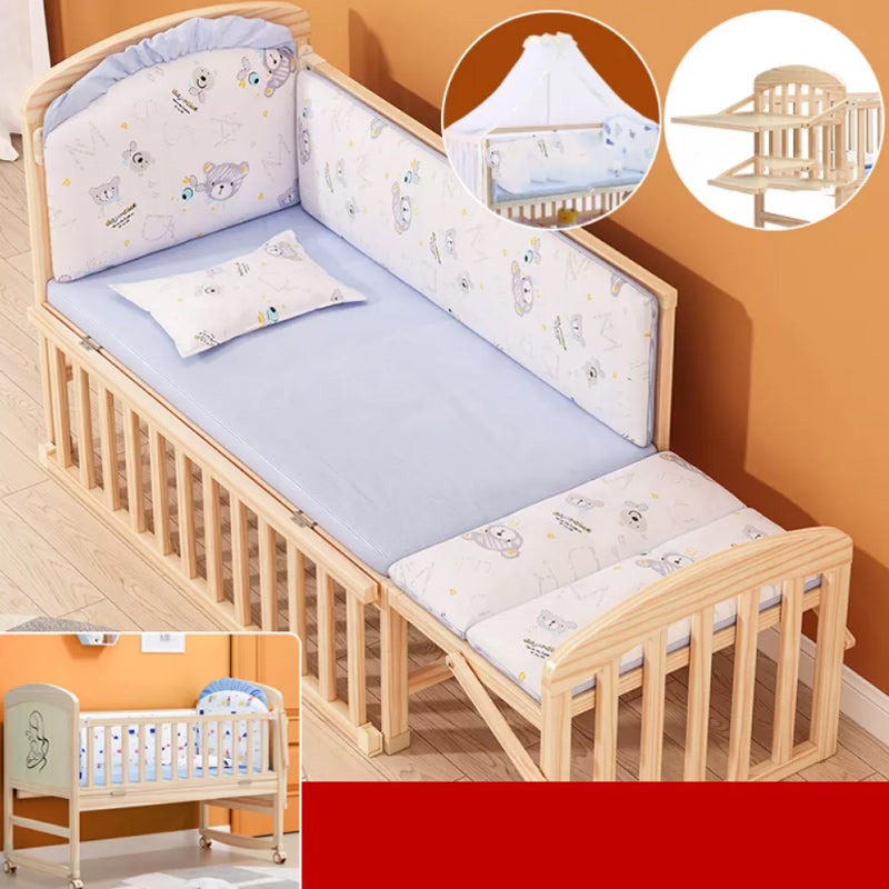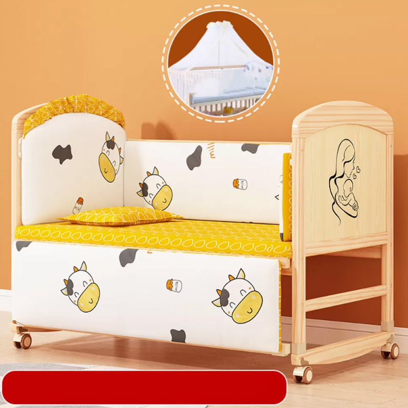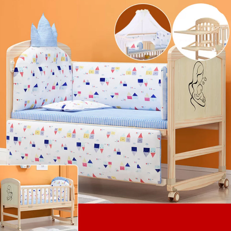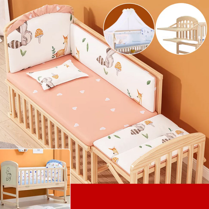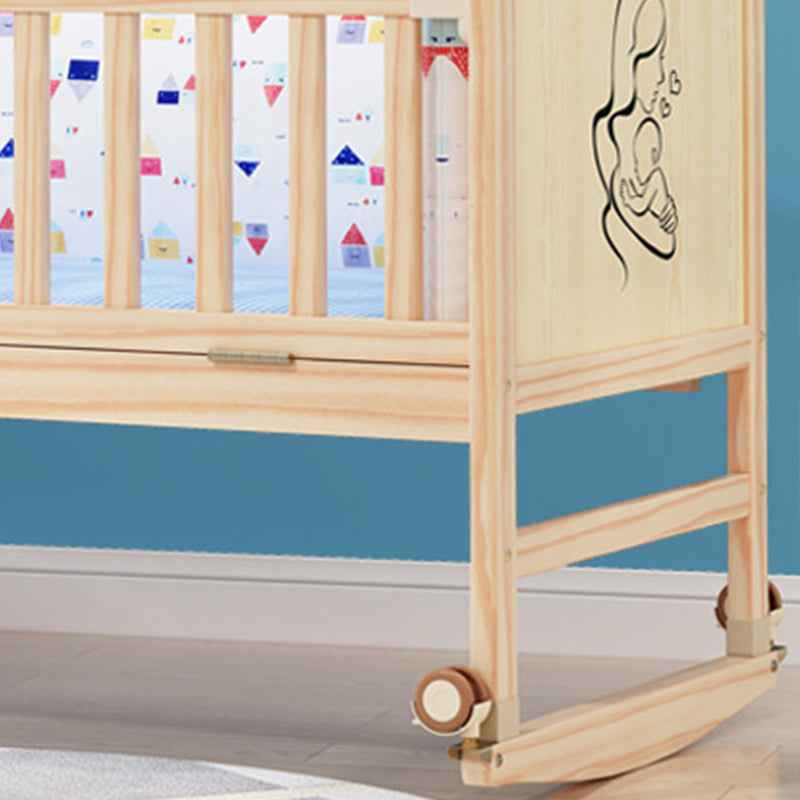 Scandinavian Solid Wood Nursery Crib Guardrail Baby Crib with Casters