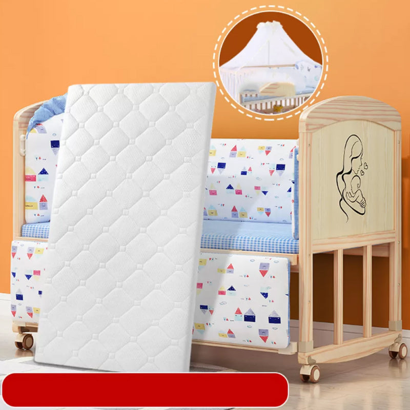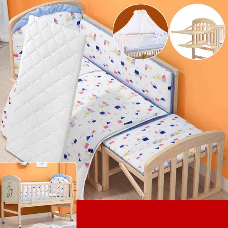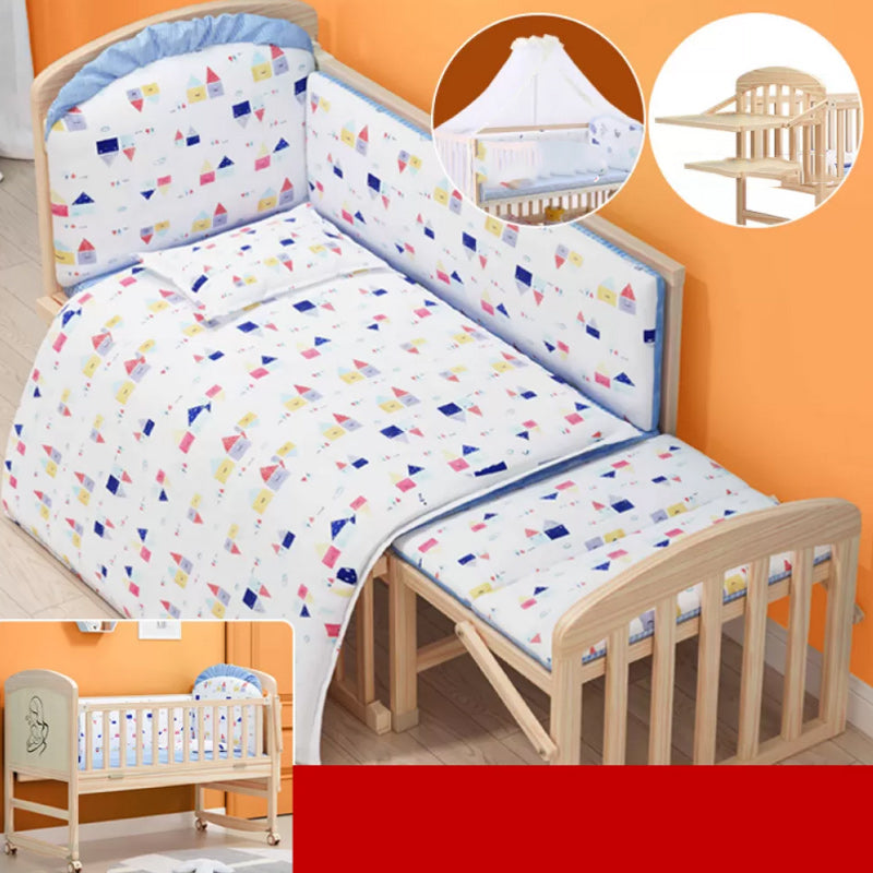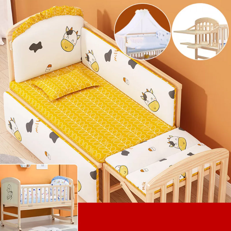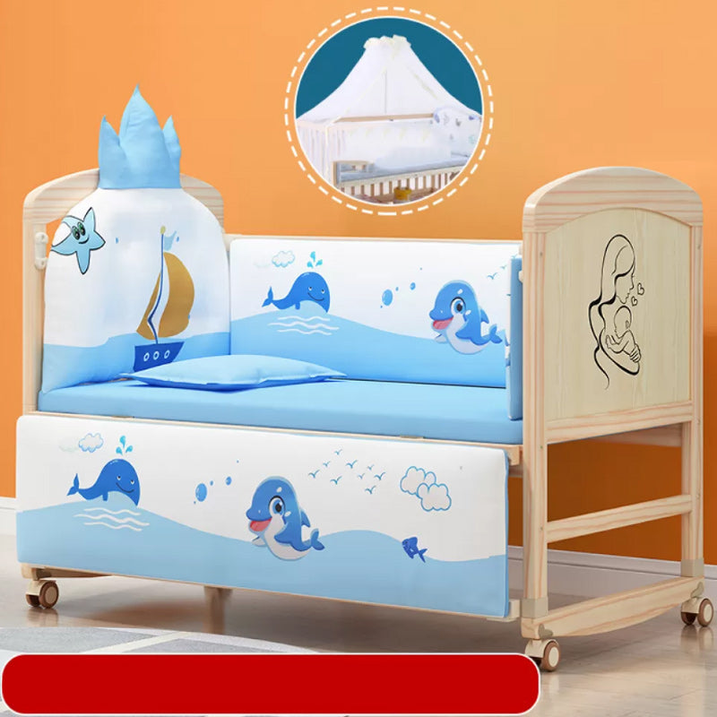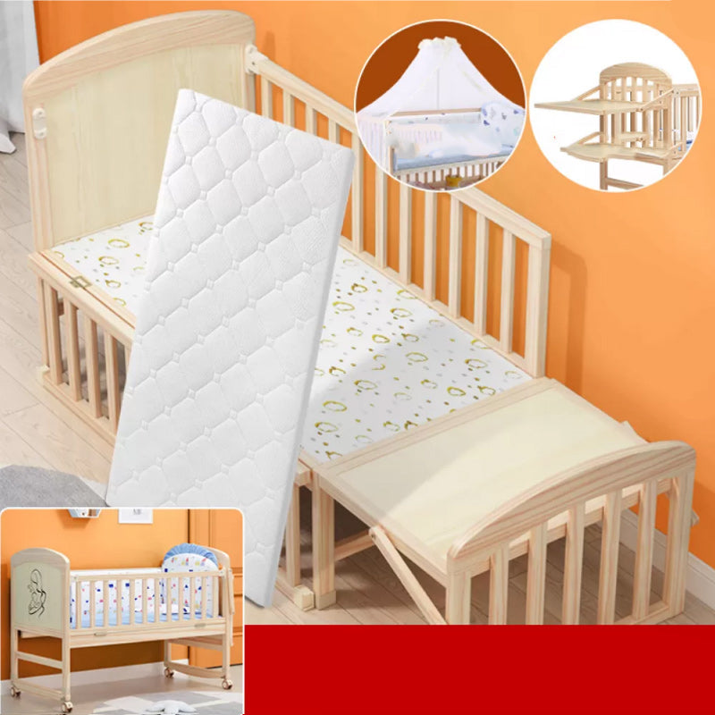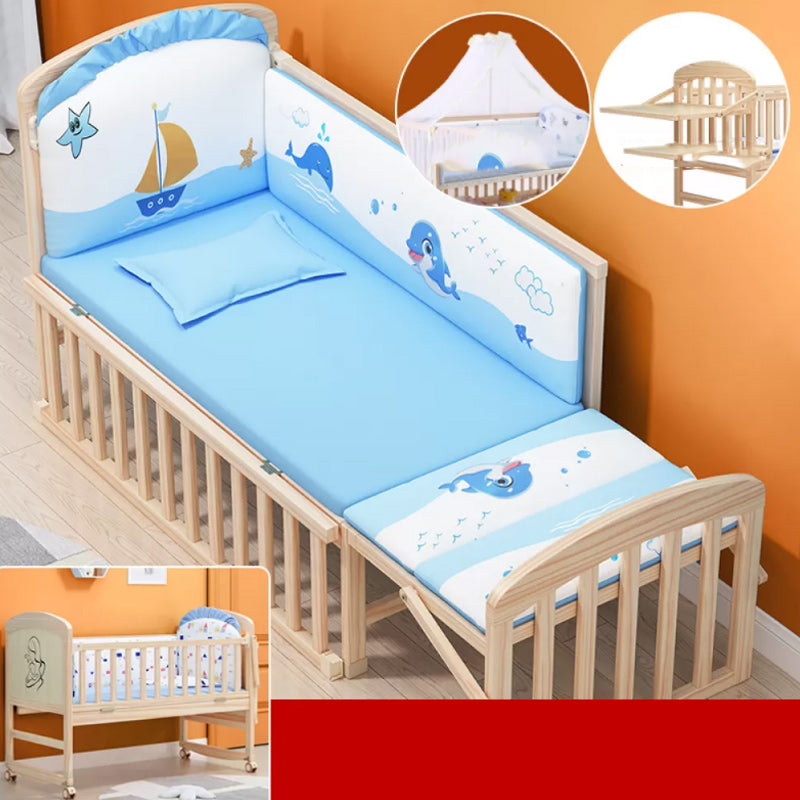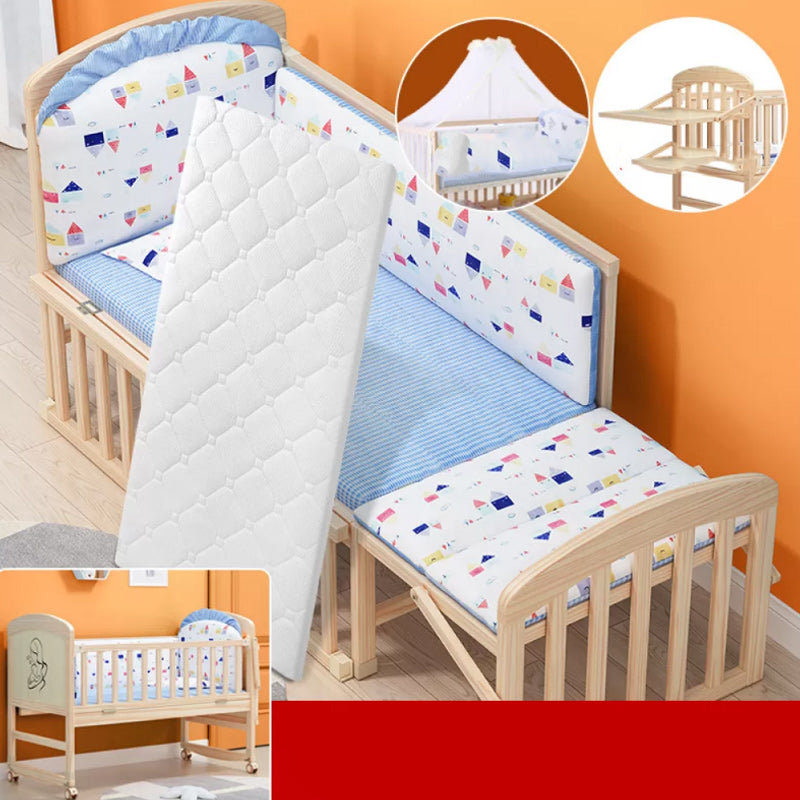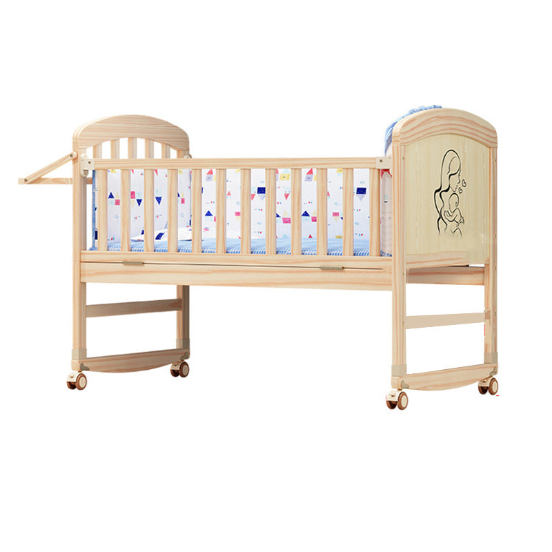 Scandinavian Solid Wood Nursery Crib Guardrail Baby Crib with Casters